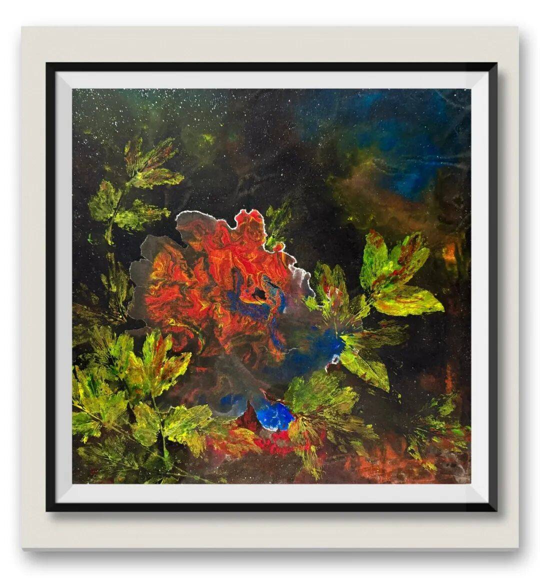 主攻花鸟而不困于花鸟,兼习山水、人物的视野,让其作品突破题材局限,兼具微观精致与宏观空灵。她巧借山水留白造势、人物情志传递之法,使笔下花卉与周遭景致、光影气韵相融相生:或衬浅山远黛,或缀禽鸟翩跹,于有限画幅中营造无限诗意。观者既能沉醉花叶细腻之美,亦能体悟万物共生的生命哲思。