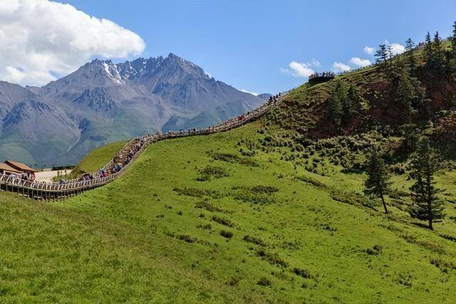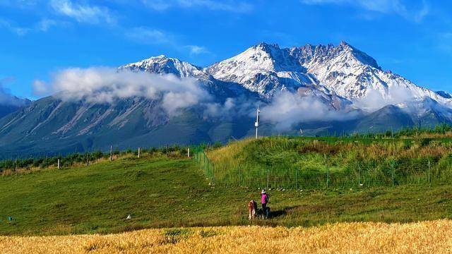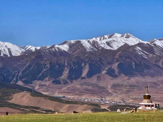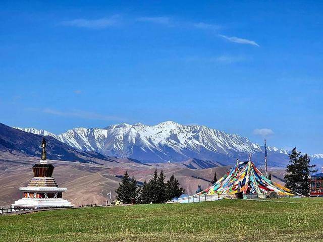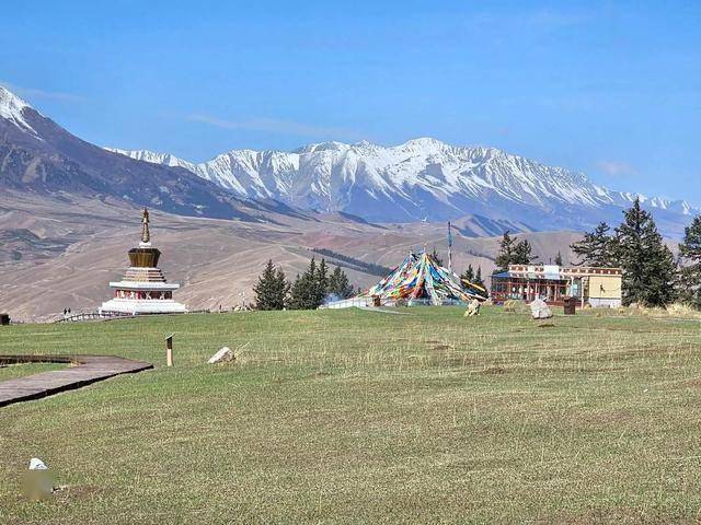 阿咪东索(牛心山)与卓尔山隔八宝河相望的神山,因山顶形似牛心而被当地牧民奉为“祁连众山之王”。山体垂直分布着完整生态带:山顶冰川积雪常年不化,盛夏时仍能看到冰雪覆盖;山腰云杉林茂密幽深,林间栖息着马鹿、岩羊等野生动物;山脚草原广袤无垠,每年6月油菜花盛开时如同金色海洋。最震撼的是金色时刻:清晨朝阳或傍晚,夕阳洒在山体西侧斜面,整座山如同被点燃,积雪泛着金光,森林变成琥珀色,草地铺满碎金——这是大自然赐予人间的视觉盛宴!