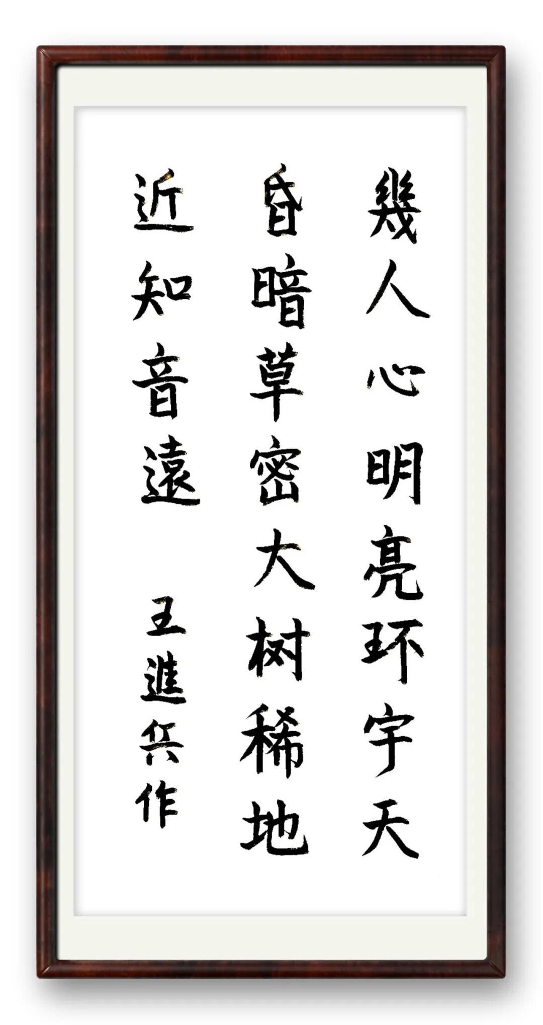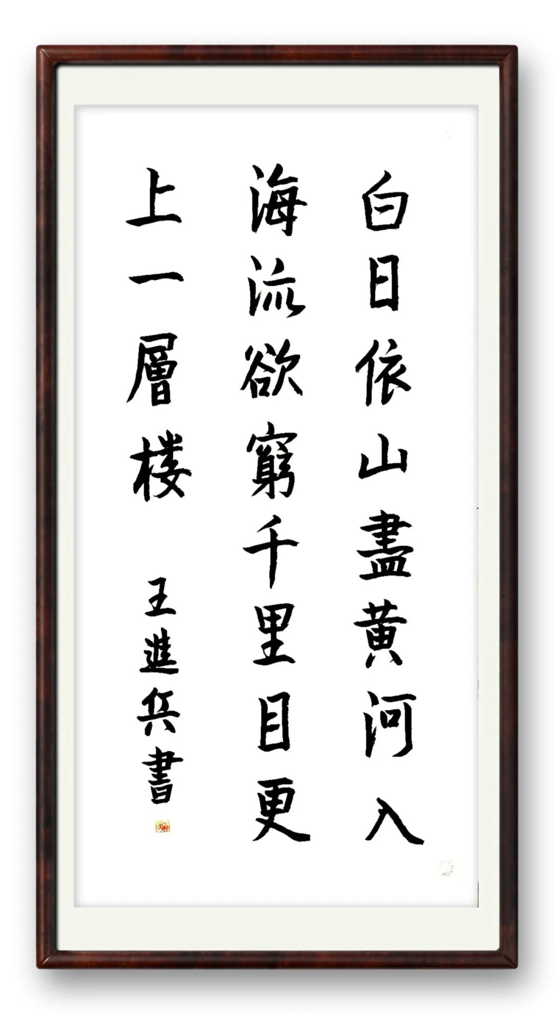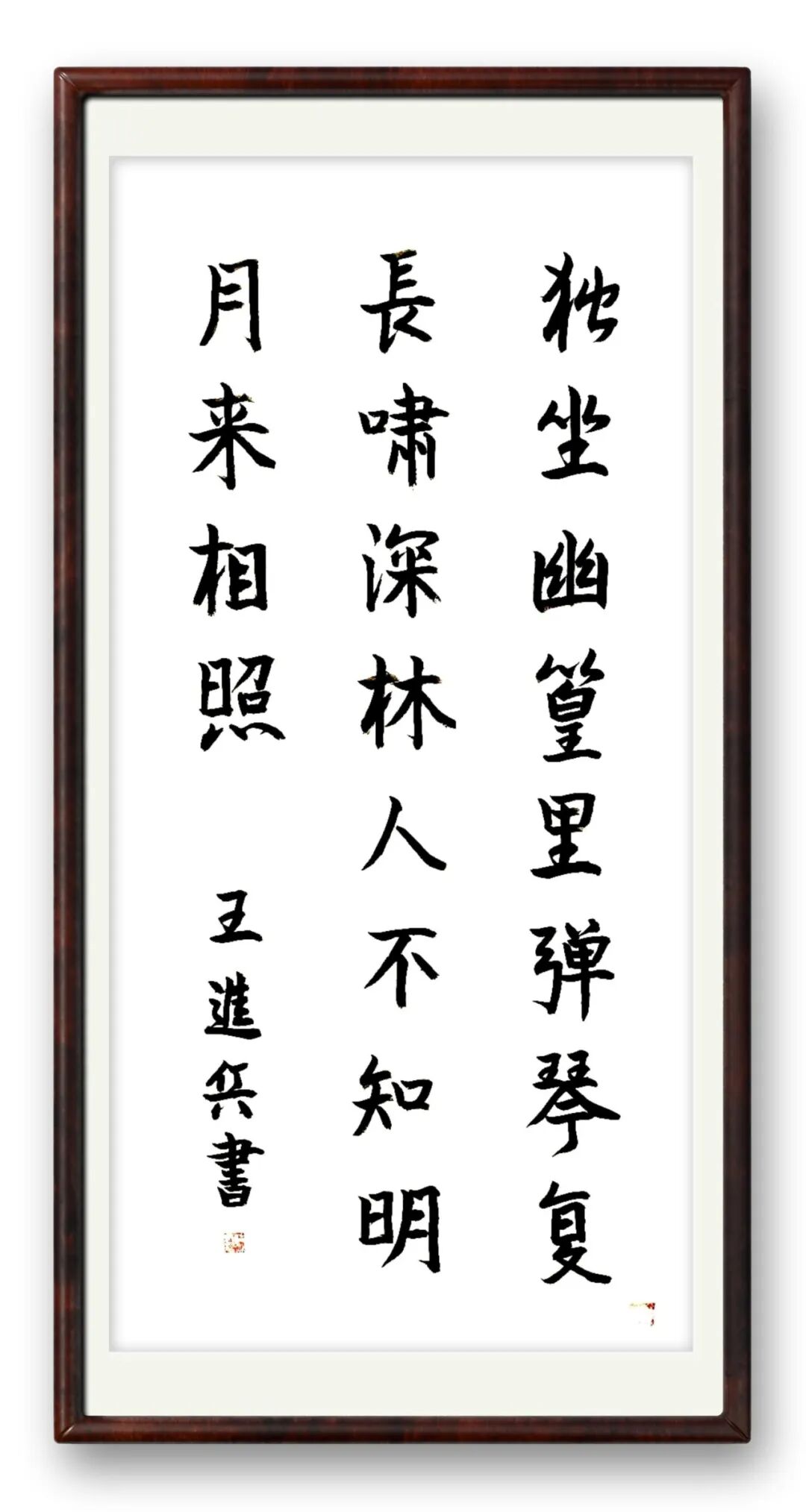 好的书法,贵在“字外功夫”,这是书家学识、品格与阅历的综合体现。王进兵先生常年身处重要岗位,见惯人间烟火却坚守心中底线,这份独特阅历让他的书法多了一份现实温度与精神高度。他不追求笔墨炫技,以朴素笔墨书写真挚情怀;不刻意彰显风格,却在一笔一画间形成独有的笔墨语言——沉稳中见灵动,端庄中见洒脱。