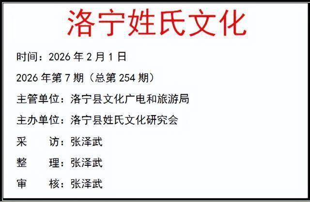作者简介:张泽武,洛宁县陈吴乡新寨村人,2003年,发起并成功组织成立了洛宁县姓氏文化研究会,担任常务副会长兼秘书长一职,2006年参与组织筹备成立洛阳市姓氏文化研究会,任副秘书长。2017年被推举为洛宁县姓氏文化研究会会长。2024年8月再次当选为洛宁县姓氏文化研究会会长。