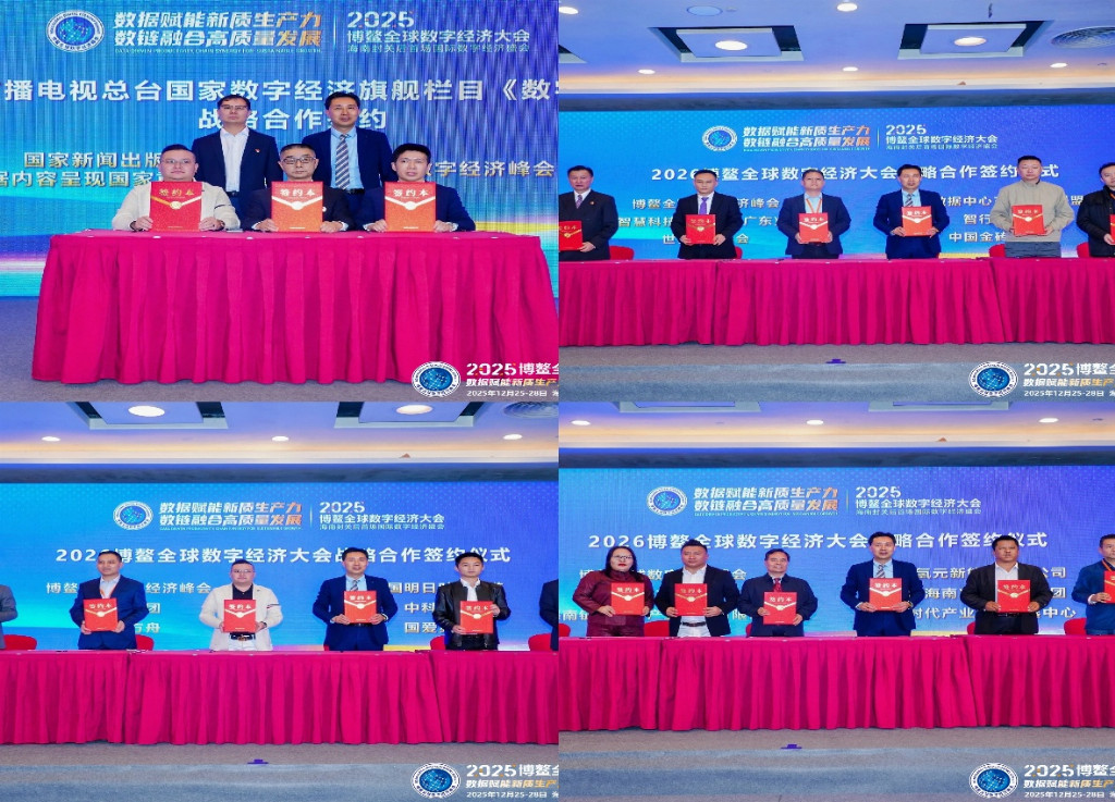 大会同期重磅落地多项重要启动与签约仪式,内容丰富、成果丰硕:中央广播电视总台国家数字经济旗舰栏目《数字强国》筹备启动仪式、链商方舟数字经济产业平台全球启动仪式顺利举行;博鳌全球海南自贸港商业发展工作委员会、定企集团、博鳌全球链商数据产业联盟、博鳌全球链商万企联盟同步完成启动。会议现场还举办中央广播电视总台国家数字经济旗舰栏目《数字强国》签约仪式、2026博鳌全球数字经济大会战略合作签约仪式,以签约聚力,共启数字经济发展新征程。