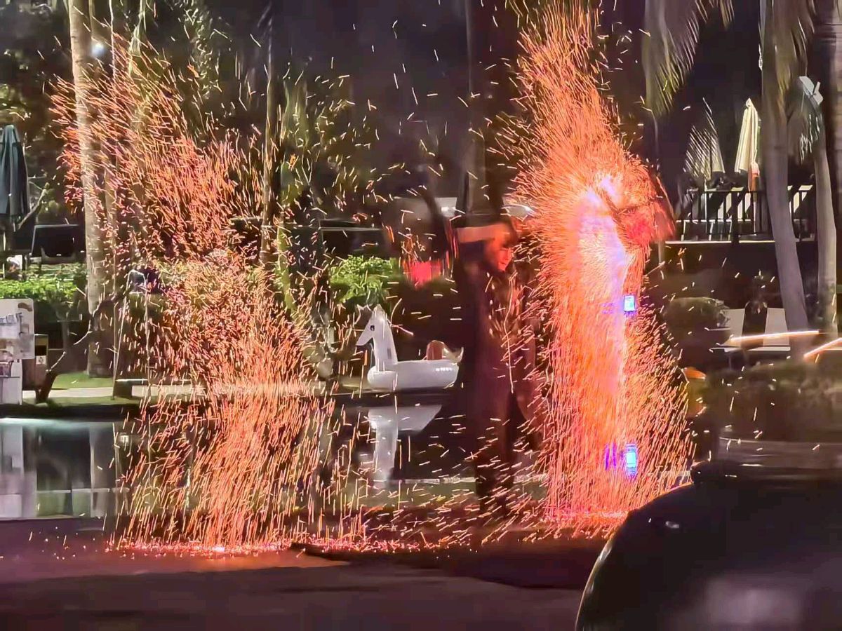 晚上在所入驻的酒店,吃西餐,看玩火表演。美丽的铁花,与缓缓落入海中的红太阳,相得益彰,美丽极了。这美丽景色之下,美食入胃,真是人世间的最美时刻。此时,福宝问妈妈:太阳为什么下水了,而不是下山了?这个问题提得好。不同地理环境的人,对世界的认知是不同的。