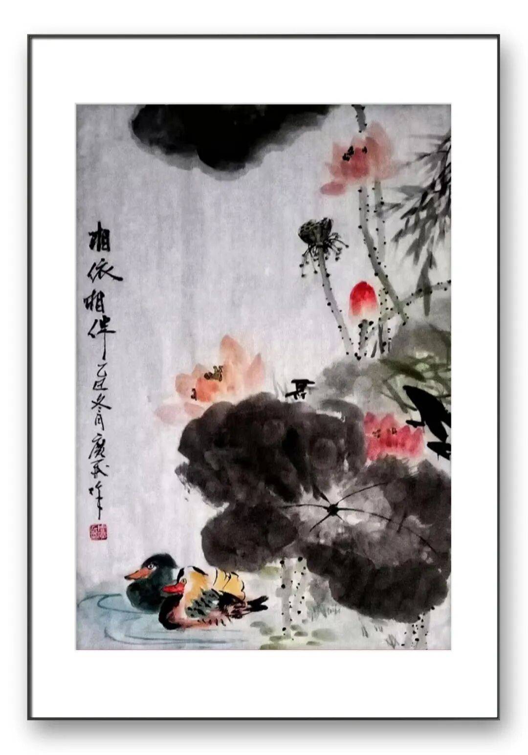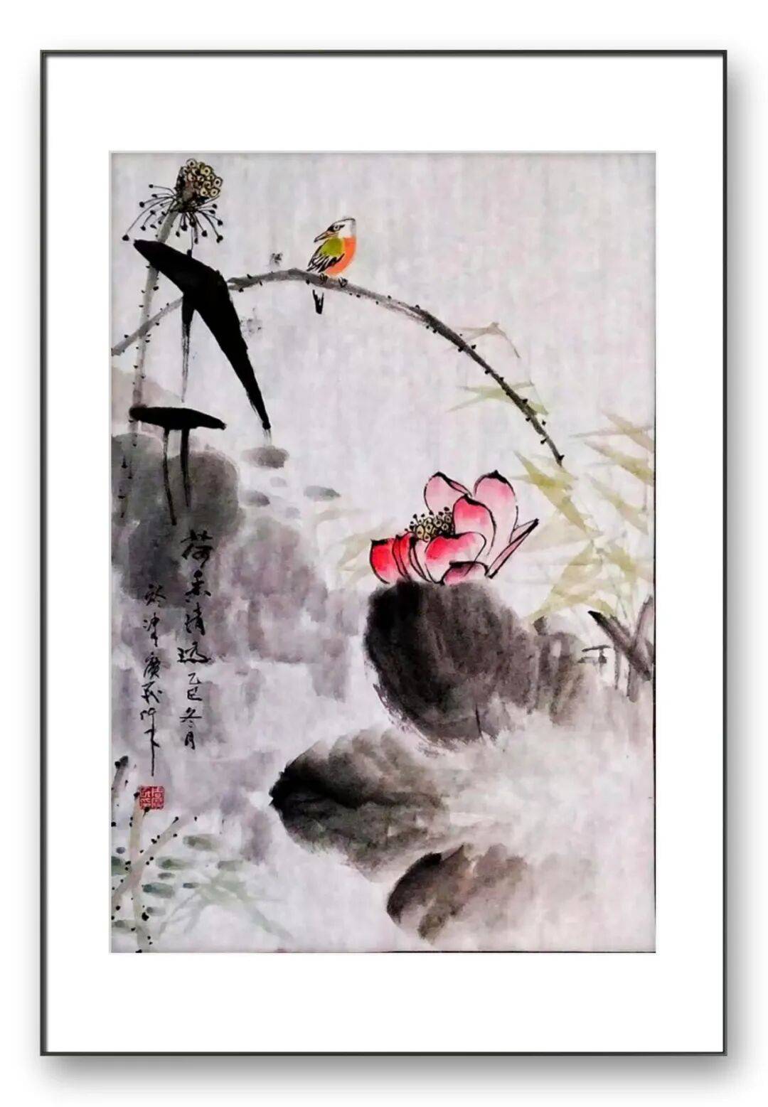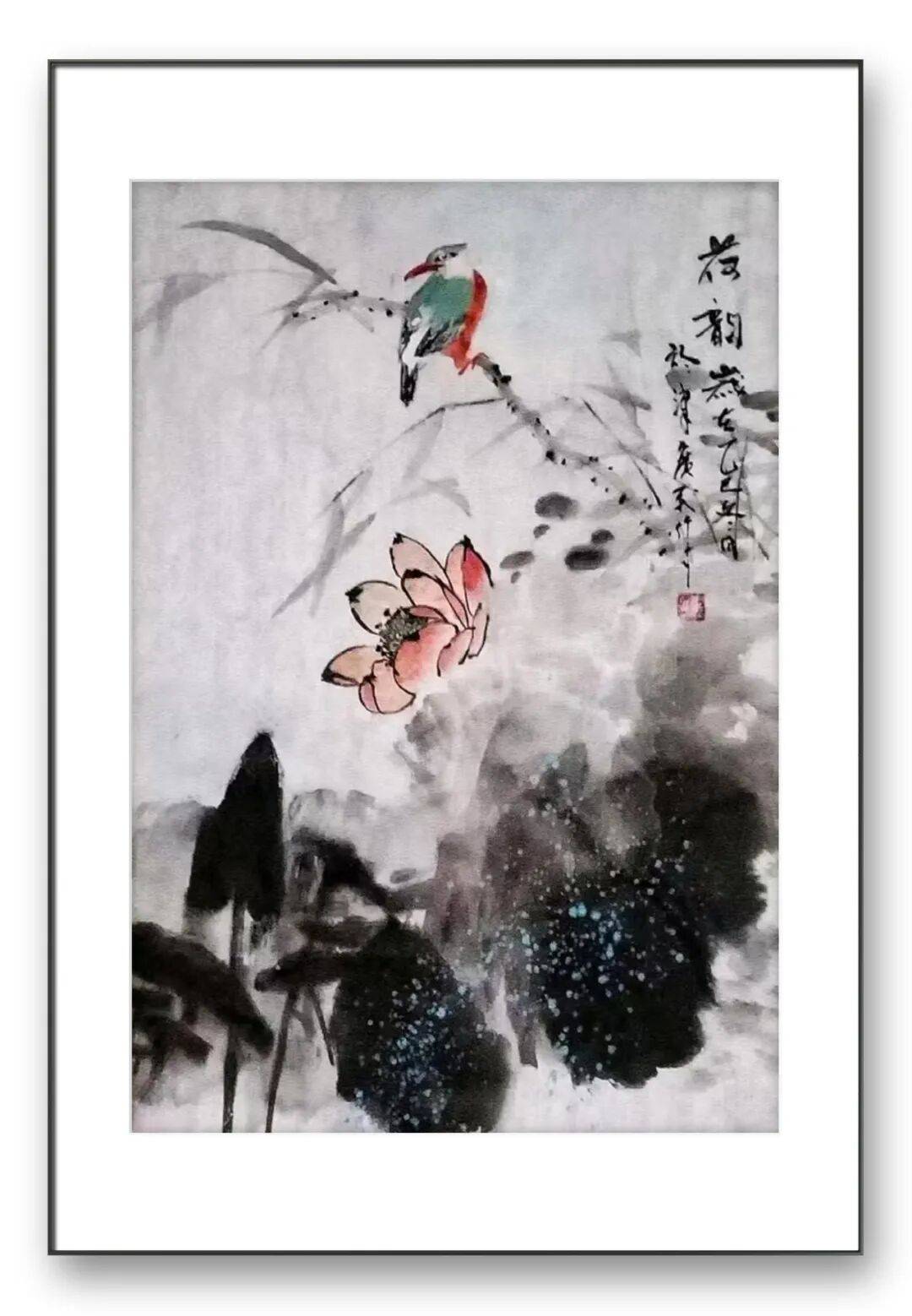在艺术表达上,他追求“大感觉、大境界”,以纯粹洗练的视觉效果,描绘花鸟世界的真情雅趣。构图上,他讲究祥和清新、疏密呼应,水墨荷花作品多取简洁疏朗之态,以留白造势,让画面更富空灵之气;而彩墨作品则注重构图的饱满充盈,通过物象的错落排布,营造出活力盎然的氛围。线、色、墨、水的有机结合,让画面动与静相生、情与景相合,既彰显出东北汉子的豪迈气度,又暗藏笔墨的细腻飘逸,刚柔并济间尽显独特艺术魅力。作为淡惠轩书画院院士,周广民始终以谦逊之心深耕艺术,将数十年的人生阅历与文化积淀融入笔墨。他的作品,是对自然生命的礼赞,是对传统文脉的传承,更是对自我精神的表达。凌水的灵气、名师的教诲、岁月的沉淀,共同铸就了他花鸟画的艺术高度——笔墨间有山河之势,色彩中见生活之暖,意境里藏人文之深。