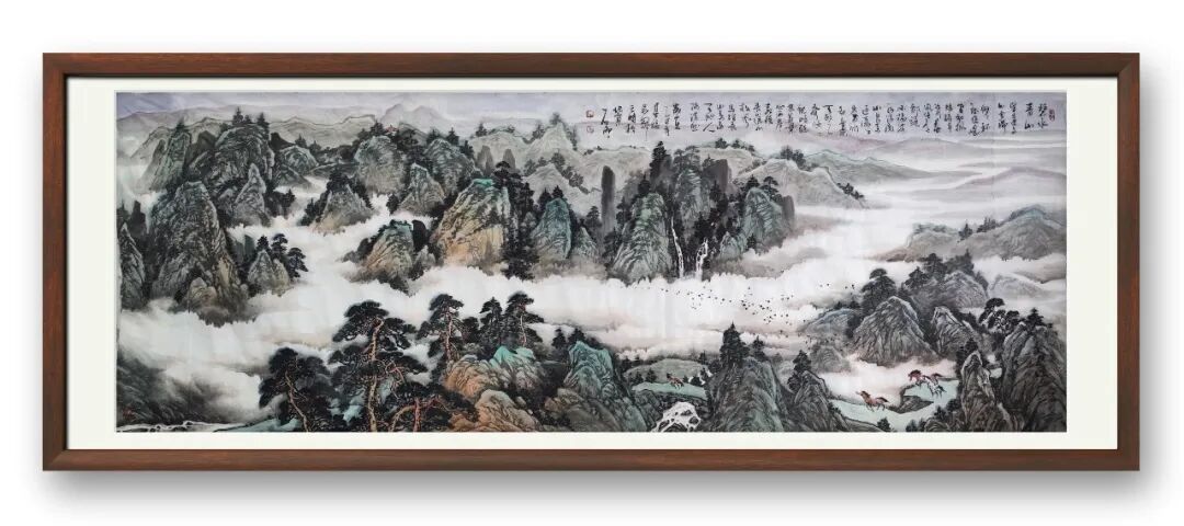 不同于当下部分山水创作的刻意猎奇,石雨的山水始终坚守“外师造化,中得心源”的古法,笔下的山川草木、溪涧云雾,皆源于自然而高于自然。他不追求技法的炫技,而是以笔墨为媒介,将自身的人生阅历与审美情趣融入山水之间,使每一幅作品都有了灵魂与温度——或绘层峦叠嶂,尽显山河壮阔;或写溪山渔隐,暗藏隐逸情怀,观其画,如置身山水之间,可感清风拂面,可听流水潺潺,心生悠远与宁静。
