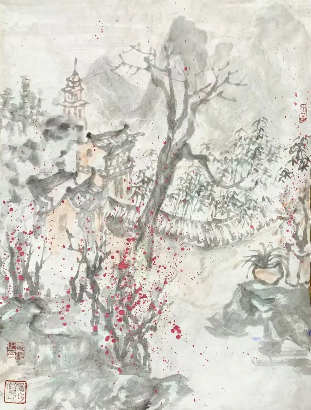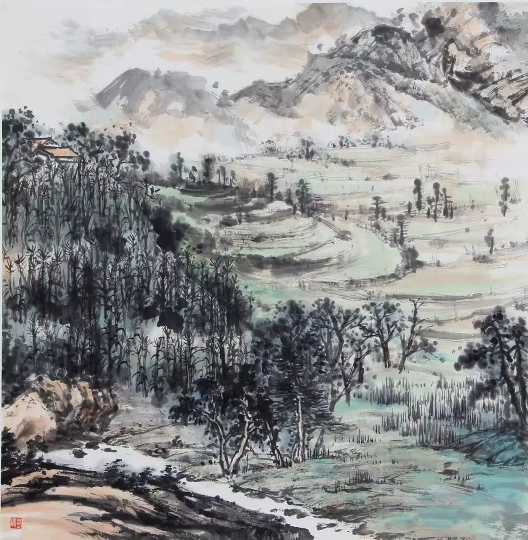 ④2015年《侗寨春意》入选首届八大山人全国山水画作品展,