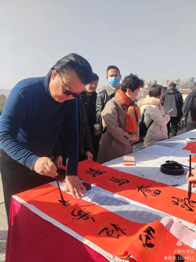 领到春联的社区李老伯喜不自胜,连连赞叹:“这墨写的春联有润气,有福气,贴在大门上更添喜气。”一句朴实的话语,道尽市民对传统年俗的珍视,也道出这场活动的暖心之处。三个小时的时光里,书法家们笔不停挥,累计送出两百余幅春联,每一幅都承载着祝福,每一字都饱含着心意。