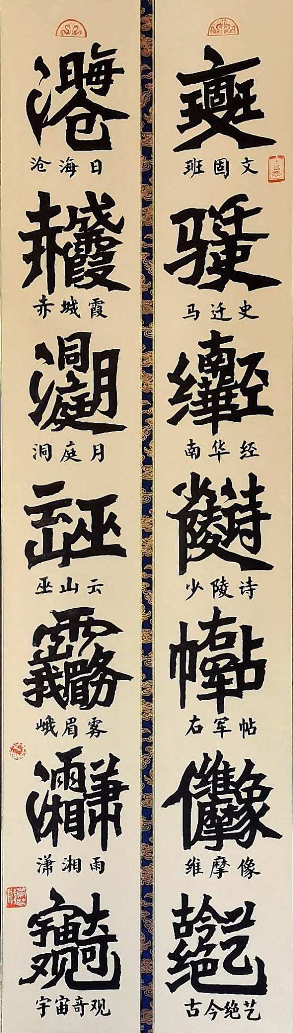 飞白书,始于东汉蔡邕,以"丝丝露白、虚实相生"为独特神韵,笔画间燥润相宜、气脉相连,是中华书法艺术中独树一帜的瑰宝。《宣和书谱》有言:"飞白之法,始于蔡邕,盖八分之轻者。"这种书体曾风靡汉唐,深得推崇,却在岁月流转中渐趋式微。葛芍麟潜心钻研飞白书数十载,吃透古法、融古出新,让这门千年绝艺重焕生机。他笔下的飞白书,笔势疾驰如骏马奔腾,墨色浓淡变幻似云卷云舒,露白处空灵飘逸,着墨处苍劲有力,将汉代艺术的大气磅礴与当代审美灵动完美契合。