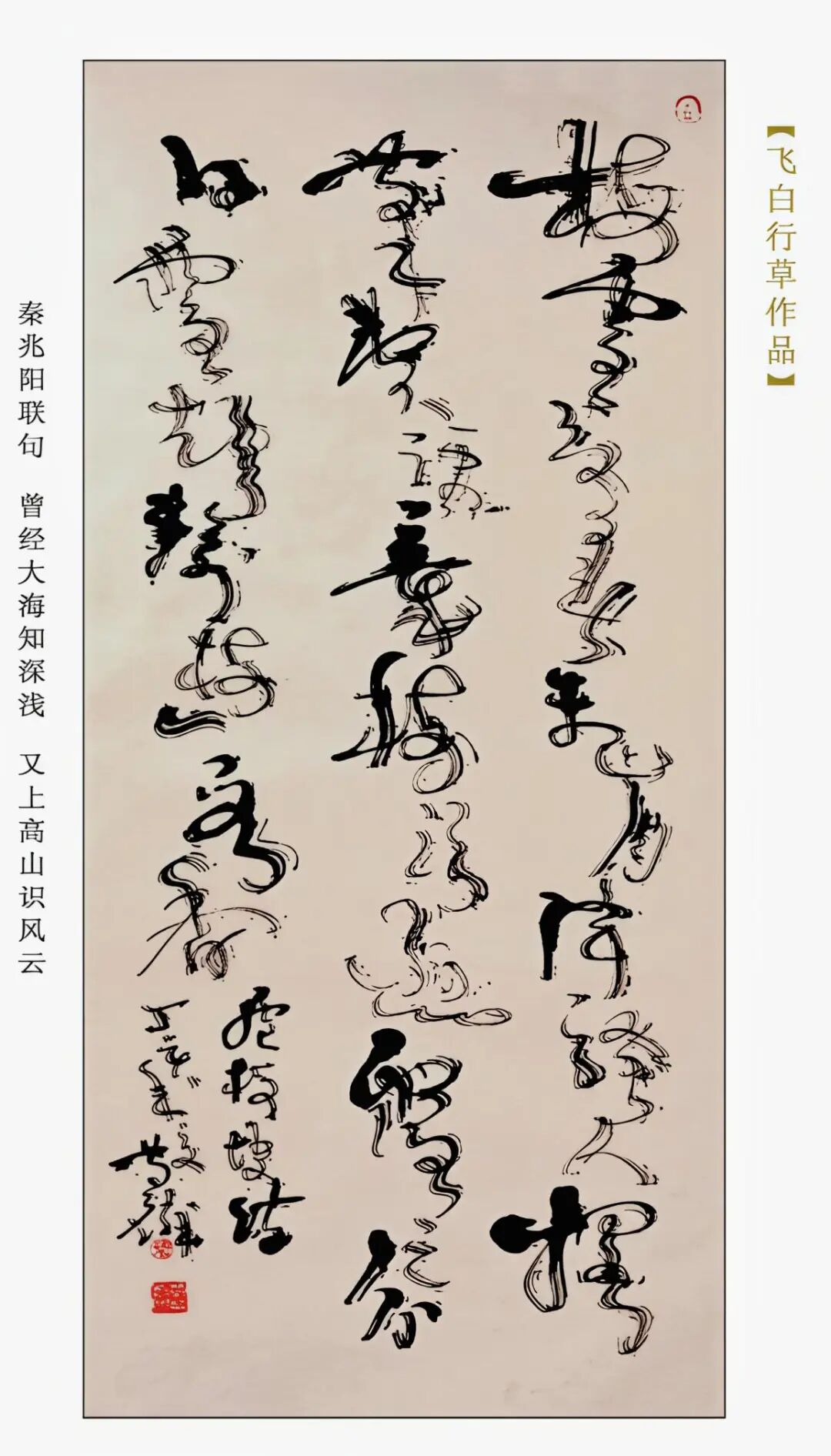 此次以飞白书献礼两会,并非葛芍麟一时兴起,而是他对传统文化与时代精神融合的深度思考。在他看来,两会是政治生活的大事,关乎民生福祉、发展大计,而飞白书的艺术内核,恰与新时代发展理念、治理智慧不谋而合。飞白书"计白当黑"的美学理念,对应着治理中"虚实结合、有所为有所不为"的智慧;笔画间藕断丝连、气脉贯通的特质,恰似中华文明五千年来薪火相传、生生不息的生命力;笔墨中刚柔并济、守正创新的风骨,更是现代化进程中传统与现代和谐共鸣的生动写照。