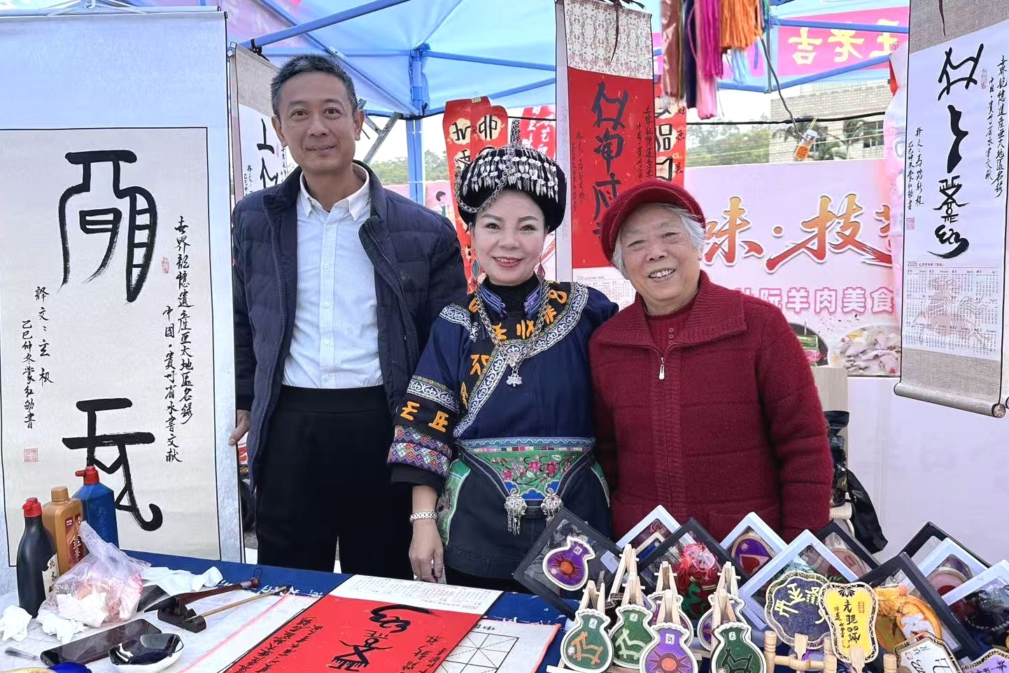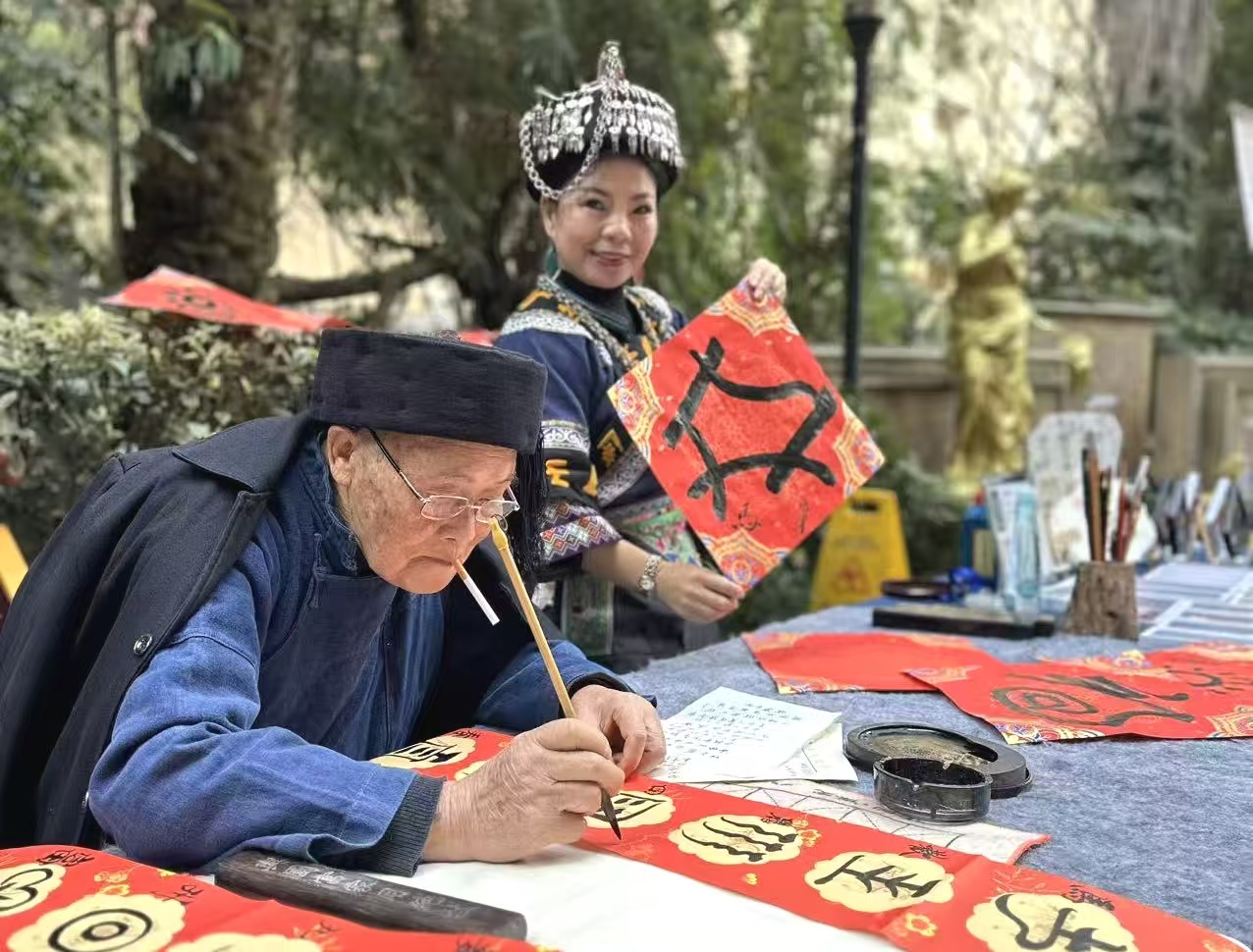 王天国: 你看,水族的经书《水书》传承几千年,是水族人生活的百科全书,传男不传女,你不但破规学了水书还成为传承人;再是水书古文字不得乱写,你一个当年的理科女状元,今天竟敢把水书古文字写成书法,做成文玩,还写到了新华社、中南海,胆子比天还大,你不是大侠谁是大侠?!