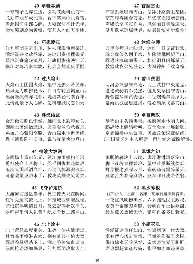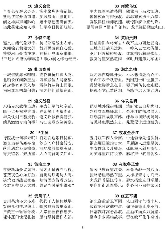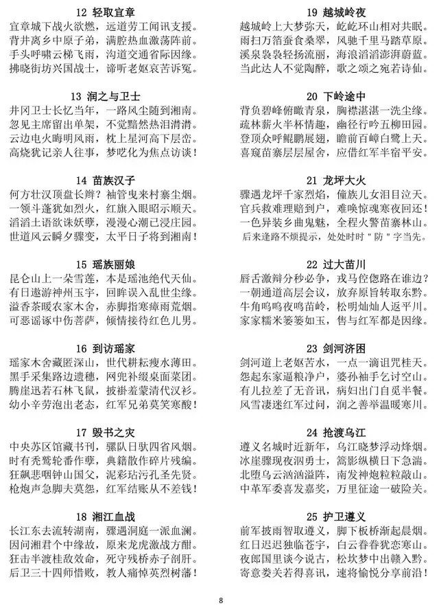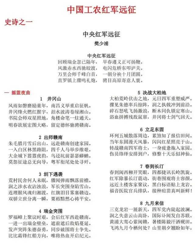 文化意义上,诗作搭建了革命文化与中华优秀传统文化传承融合的桥梁,具有不可替代的文化价值。从文化传承来看,诗作以八言律诗为载体,延续了古典诗歌的民族基因,将对仗、押韵等传统诗艺与当代革命题材结合,让传统格律在新时代焕发新生,助力中华优秀传统文化的创造性转化、创新性发展。从文化传播来看,诗作以诗意语言定格长征壮举,将抽象的长征精神转化为可感知、可传颂的文学形象,让长征精神通过古典诗体得以广泛传播,成为红色文化传承的重要载体。从文化自信来看,樊少浦以自创诗体撰写革命史诗,既彰显了中华文学的包容性与生命力,又将红色文化与传统文化深度融合,凝聚起民族文化自信,为新时代文化建设提供了宝贵借鉴,更让世界通过中国诗歌读懂长征精神、读懂中国共产党人的初心使命。