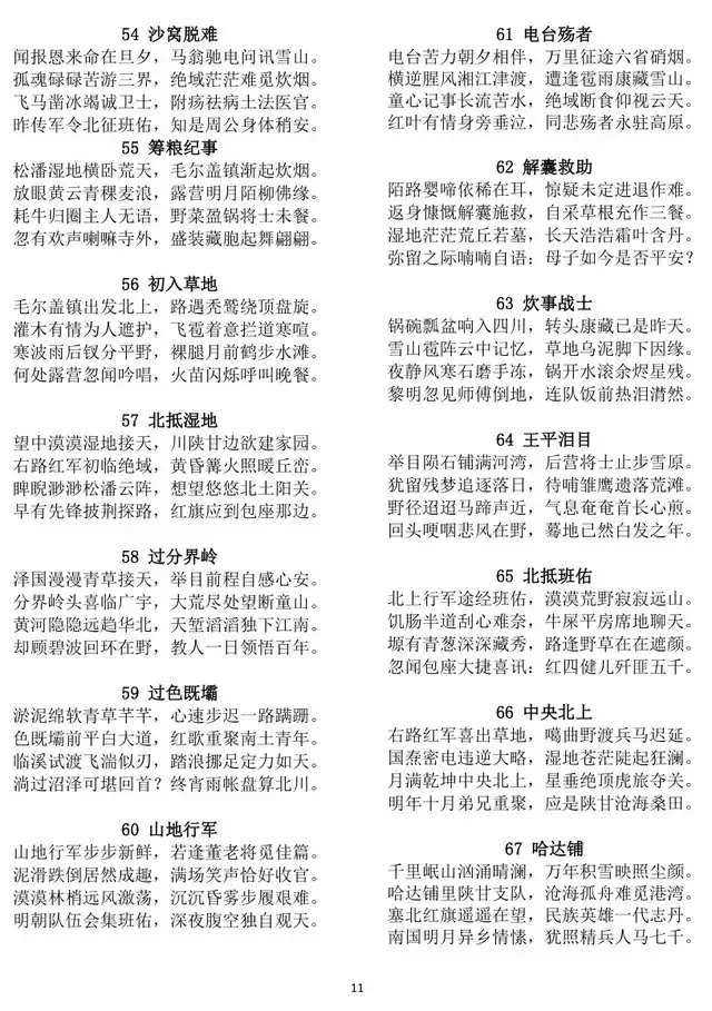 思想性上,诗作紧扣“歌颂长征精神”核心,立足中央红军长征史实,兼具历史厚重感与精神感召力,是长征精神的诗意升华。诗人以清晰脉络串联长征全程,从赣闽星火初燃、红军挥师出征,到五岭、乌蒙的艰难跋涉,再到金沙江、大渡河的壮烈激战,最后落脚于长征精神的千秋传承,既还原了红军在绝境中坚守信念、浴血奋战的历史原貌,又规避了史实叙事的生硬堆砌,将历史细节与情感抒发、精神歌颂有机融合。诗作始终贯穿家国情怀与革命信念,既写尽红军将士不畏艰险、视死如归的英雄气概,又深刻诠释了不怕牺牲、排除万难、争取胜利的长征精神,更将这种精神与民族复兴的时代追求相连,实现了历史记忆、革命情怀与时代价值的同频共振,彰显了强烈的思想引领作用。