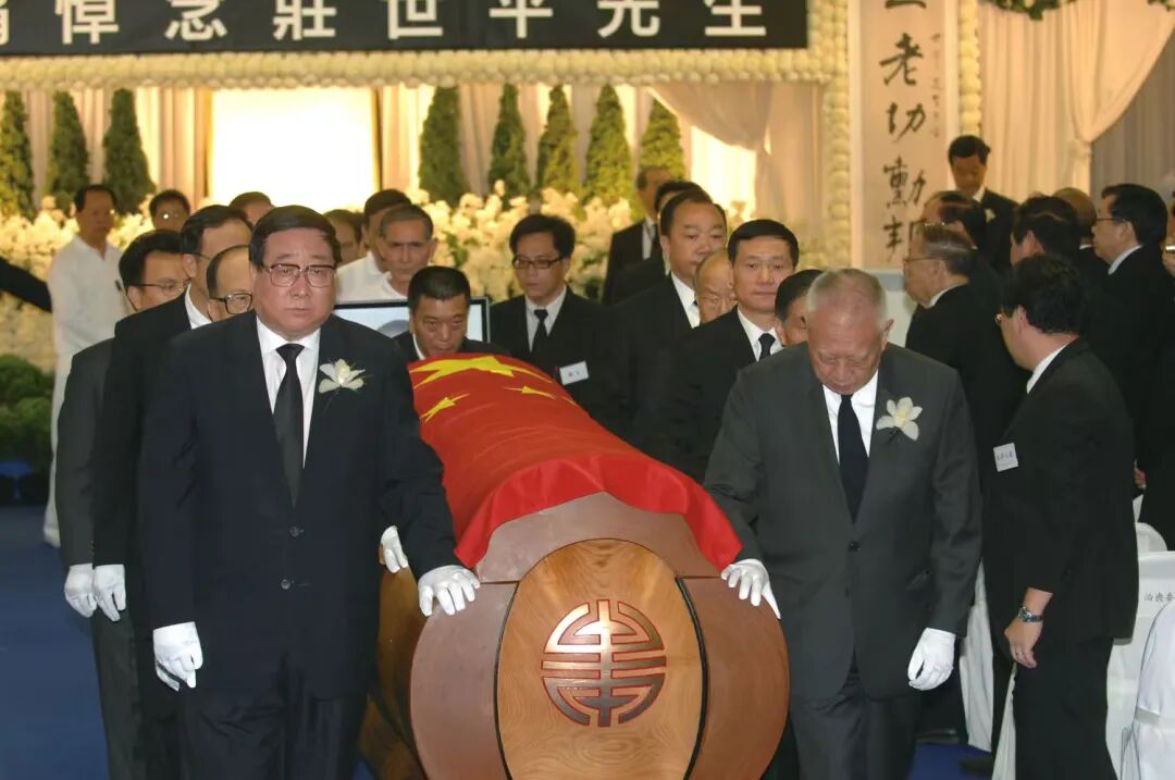 ▲2007年7月8日,庄世平先生公祭大会在香港举行,董建华、高祀仁、林兆枢、李嘉诚、肖钢等为庄世平扶灵