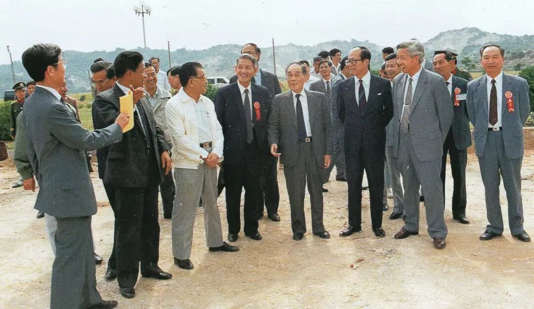 ▲1978年夏天,庄世平与吴南生、李嘉诚等视察汕头大学建筑工地