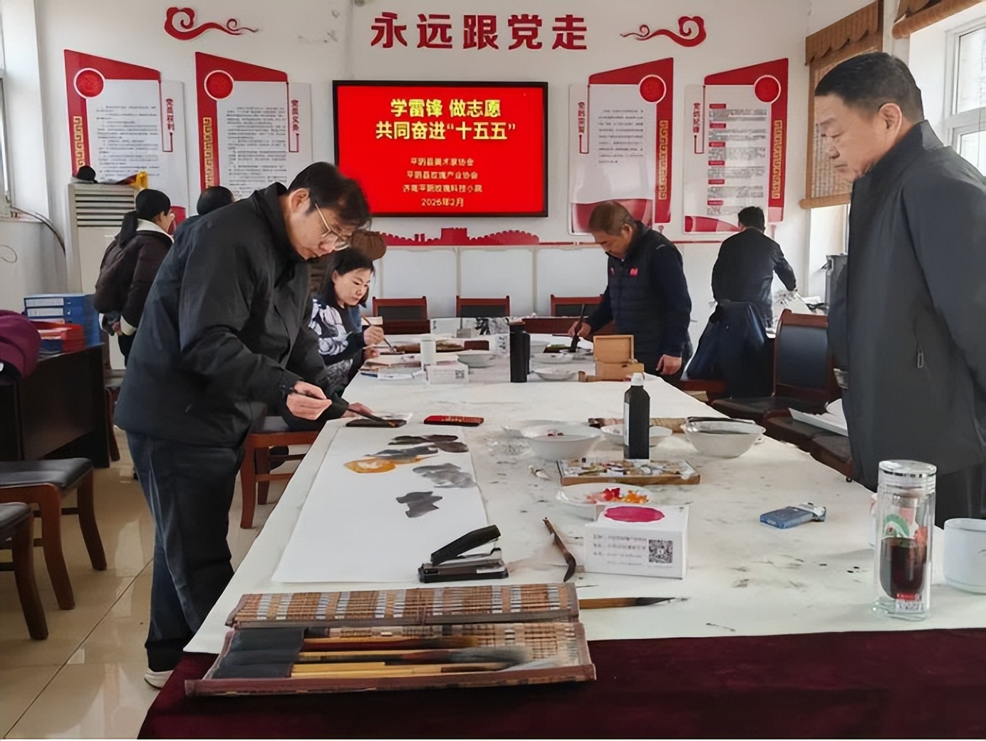 3月3日,在学雷锋纪念日来临之际,为深入践行雷锋精神,以文艺力量赋能乡村振兴,在“十五五”规划开局之年凝聚奋进力量,平阴县美术家协会走进玫瑰镇高辛村、赵台村,举办“学习雷锋做志愿,共同奋进‘十五五’”书画创作活动。本次活动由平阴县特色产业发展中心、平阴县美术家协会、平阴县玫瑰产业协会、济南平阴玫瑰科技小院联合举办。