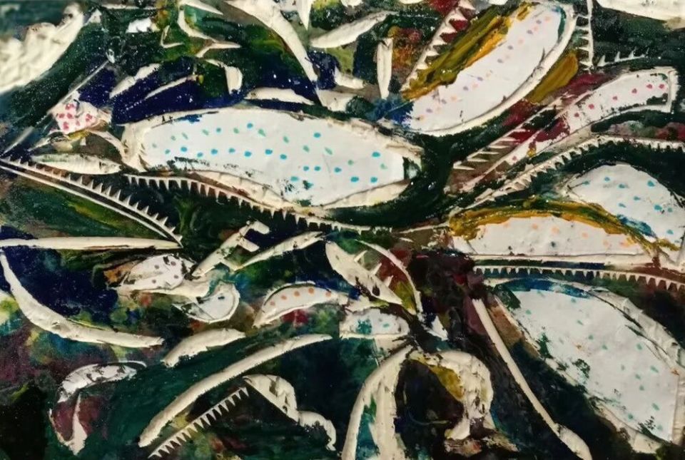 作品木板加纸刻结合配色《灯笼鲳鳊鱼》