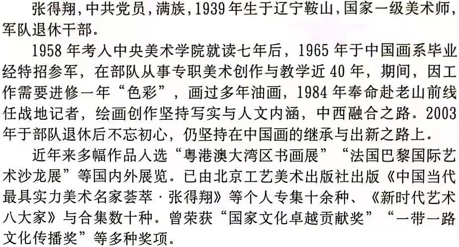 如今,已年过八旬的张得翔依然笔耕不辍,他始终牢记党员身份与军人使命,用画笔传递正能量,用艺术诠释家国情怀。从战火中走来,向时代中走去,张得翔用一生的坚守与追求证明,真正的艺术必然扎根于生活、服务于人民、无愧于时代。他的作品,既是军旅岁月的生动纪实,也是家国情怀的深情抒发,更是当代中国书画艺术传承与创新的生动范本,为后辈艺术家树立了坚守初心、深耕不辍的精神标杆。