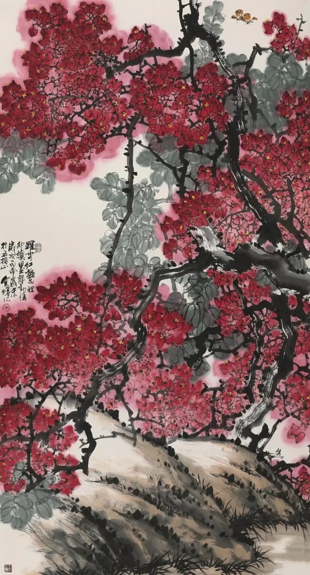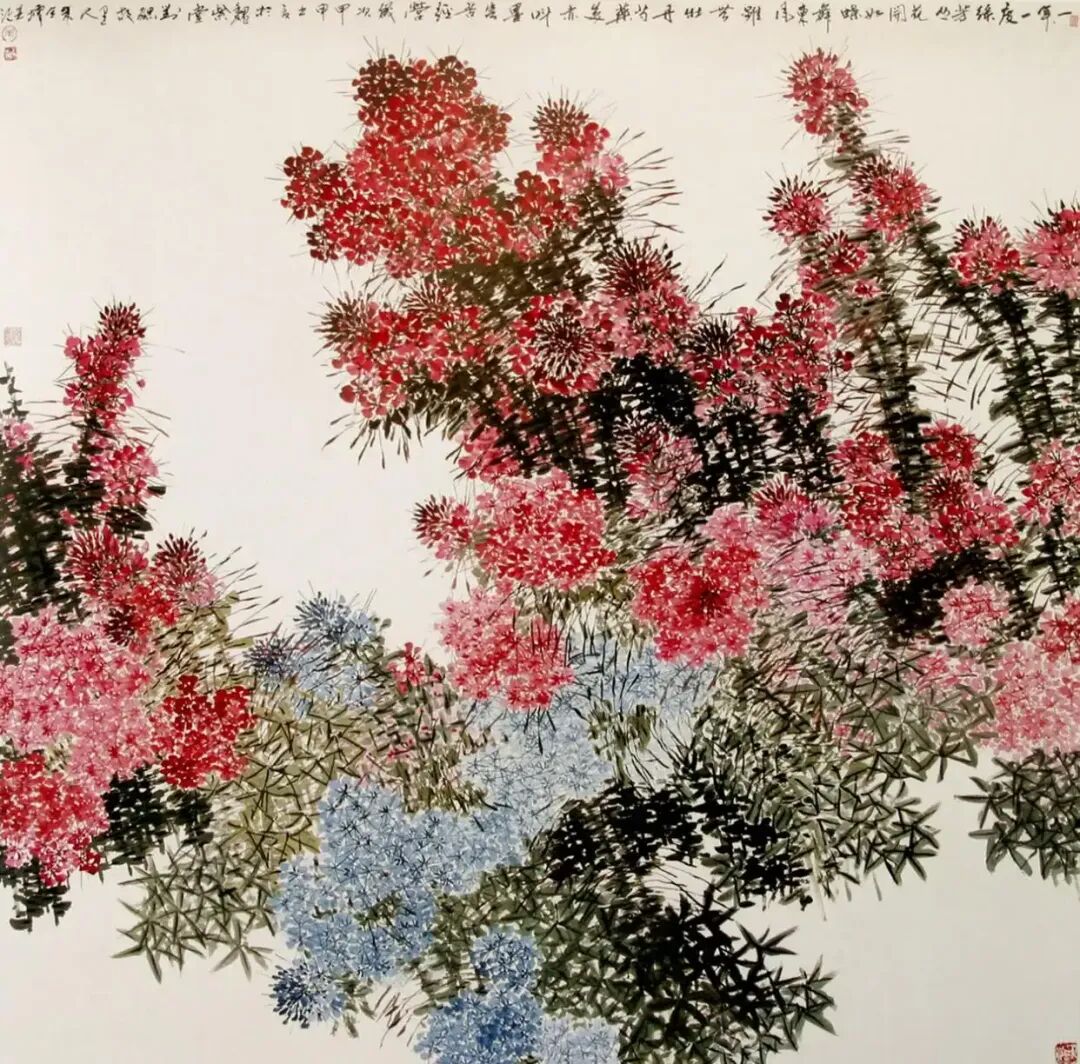 如今正值百年难遇的“新冠”流行,但我们从朱全增先生的作品中没有看到丝毫的疫情阴影,相反,他的作品,磅礴大气,万紫千红,一派生机,扫祛病毒阴霾,给人们带来了生的希望和美的祝福!