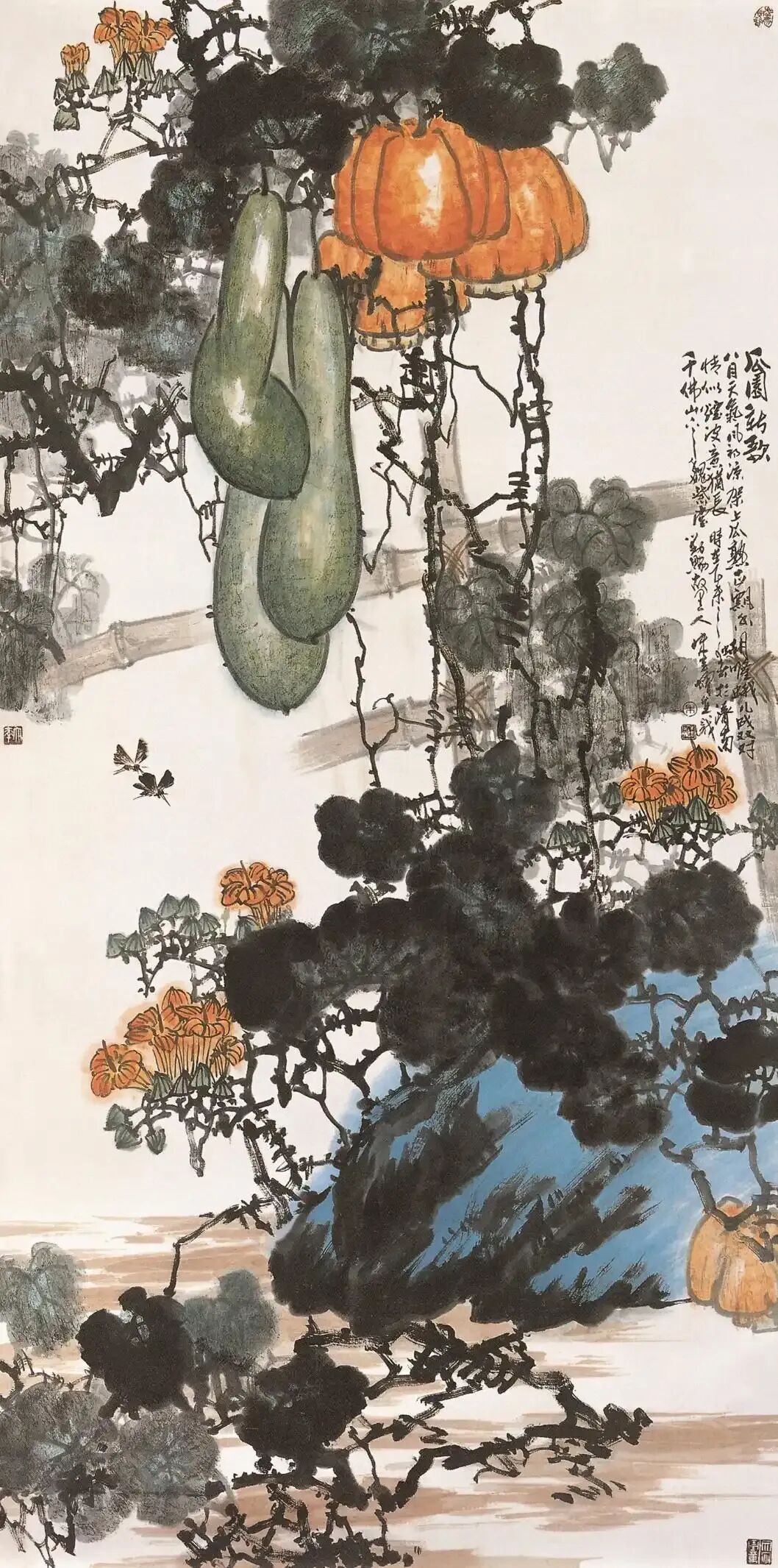 在中国书画理论中,“气象”就是强调作品具有一种雄浑气盈的整体格局,一种将万物汇纳一体的势态。我认为,朱全增的花鸟画就具有这样一种格局,势态和气象。从客观方面看,乃包融万象,聚物成形,呈全景之笼罩。花鸟画虽为天地万物中的局部之物,但却能小中见大,由微观而扩展为宏观。从主观方面讲,这种万象皆备的格局,毕竟需要画家全力以赴,将笔,墨,色,造型和构图诸种艺术因素统摄起来,与客观世界交流相应,互照而合,方能最终实现。若无大胸襟,备大气魄,具大手笔,是绝难胜任的,也是绝难表现出花鸟画之大“气象”的。