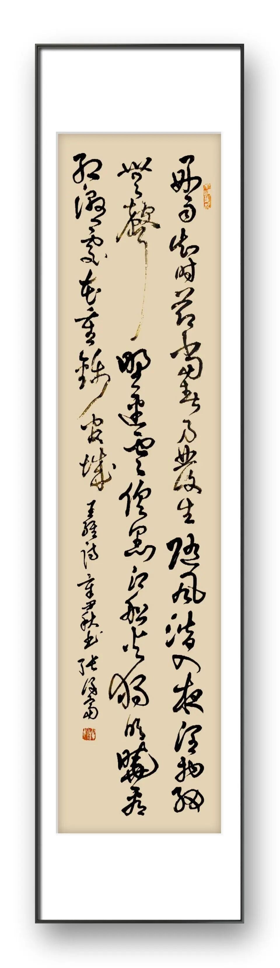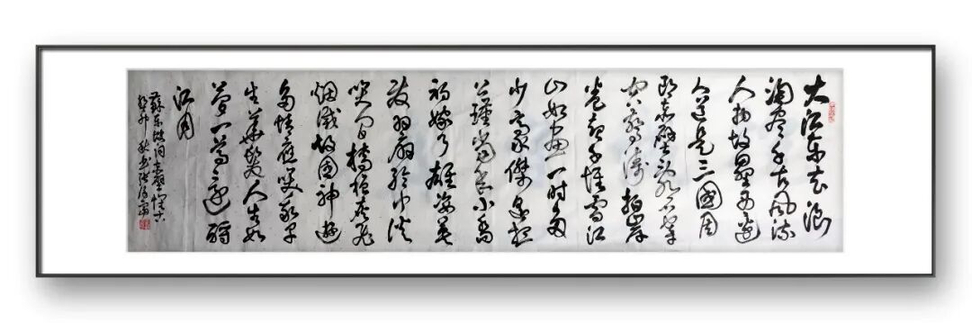 他书写的线条,如行云流水般流畅自然,却又不失筋骨,如“铁画银钩”般苍劲有力,却又不显生硬,刚柔相济、虚实相生,尽显笔墨的韵味与张力。在楷书创作中,他用笔严谨有度,起笔、行笔、收笔皆有章法,横平竖直、结构匀称,端庄大气中不失灵动之气,避免了楷书常见的刻板与僵硬;在行书创作中,他运笔流畅自然、气韵连贯,字与字、行与行之间呼应顾盼,疏密得当、错落有致,既有楷书的端庄,又有草书的灵动,达到了“刚柔相济、雅俗共赏”的至高境界;在草书创作中,他笔走龙蛇、挥洒自如,点画飞动、线条缠绕,于狂放中见理性,于奔逸中含节制,将草书的“势”与“韵”发挥得淋漓尽致。
