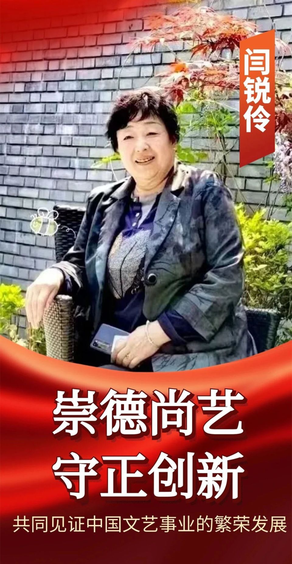 闫锐伶,女,1958年2月出生于北京,国家一级美术师,书法教育讲师(高级),非遗书画传承师(高级),非物质文化遗产创新人才,国礼艺术家,中国社会艺术协会榜书委员会会员,中国扇子艺术学会会员,北京市书法家协会会员,中国书画家联谊会新文艺群体书画家工作委员会会员,中国楹联协会会员,国务外交礼品师,中央电视台《名家讲堂》栏目组签约艺术家,中国民族建筑研究会书画艺术专业委员会客座教授、文化传播形象大使,中国中外名人文化研究会学术委员会会员、艺术顾问,中国传统艺术非遗传承人,全国第一批非物质文化遗产创新人才,中国珍藏级艺术家。中央电视台央媒文化组委会艺术会员。香港电视台书画家。中国中央电视台签约艺术家。香港电视台签约艺术家。智慧国潮研究员。书法作品被文化部文化艺术人才中心录入人才库,并颁发证书。