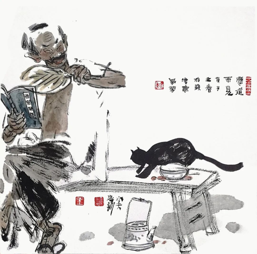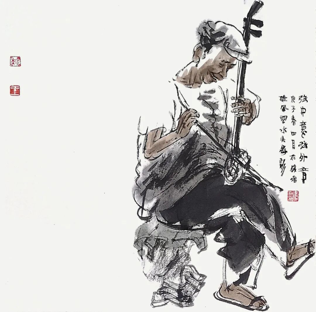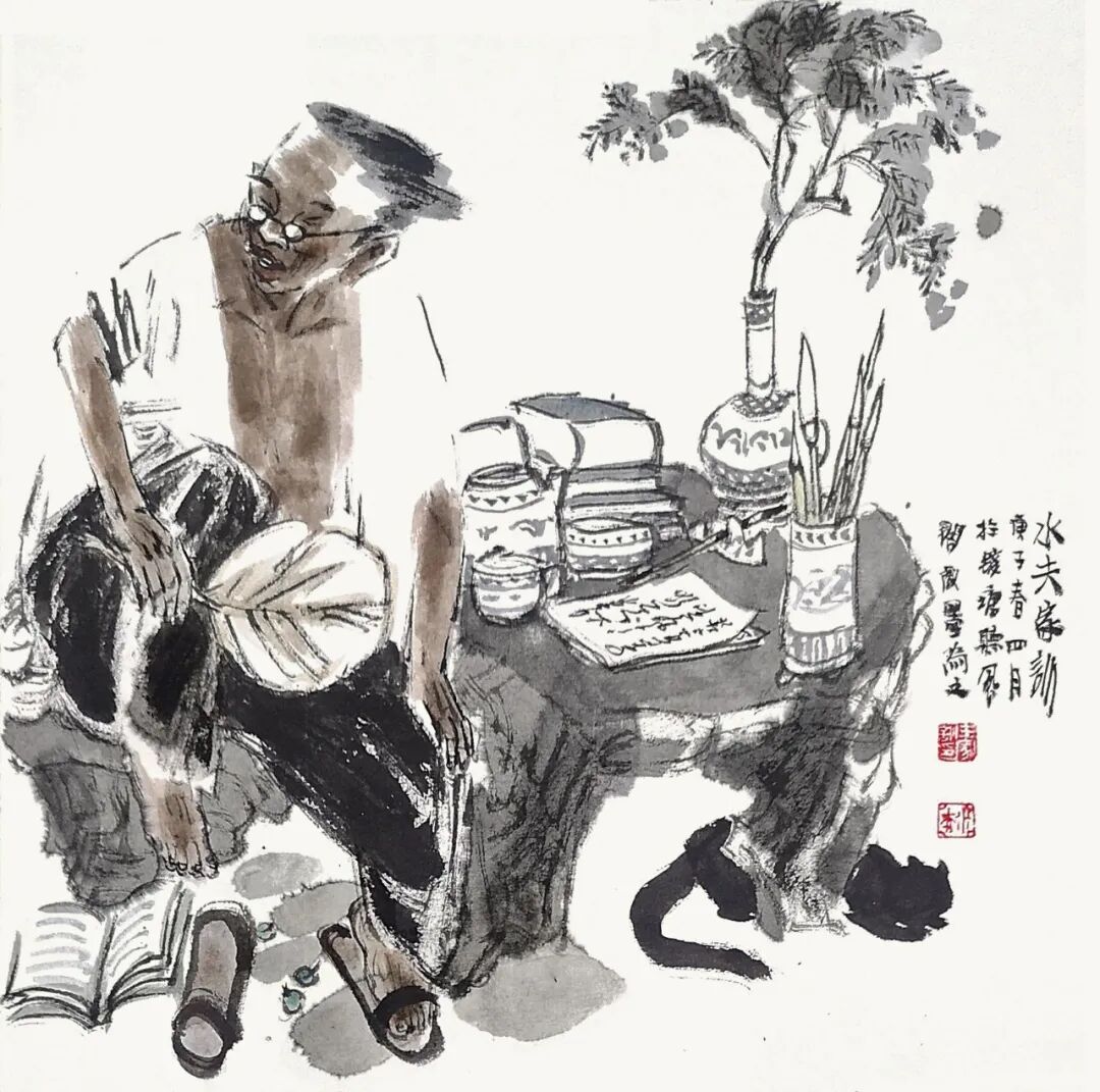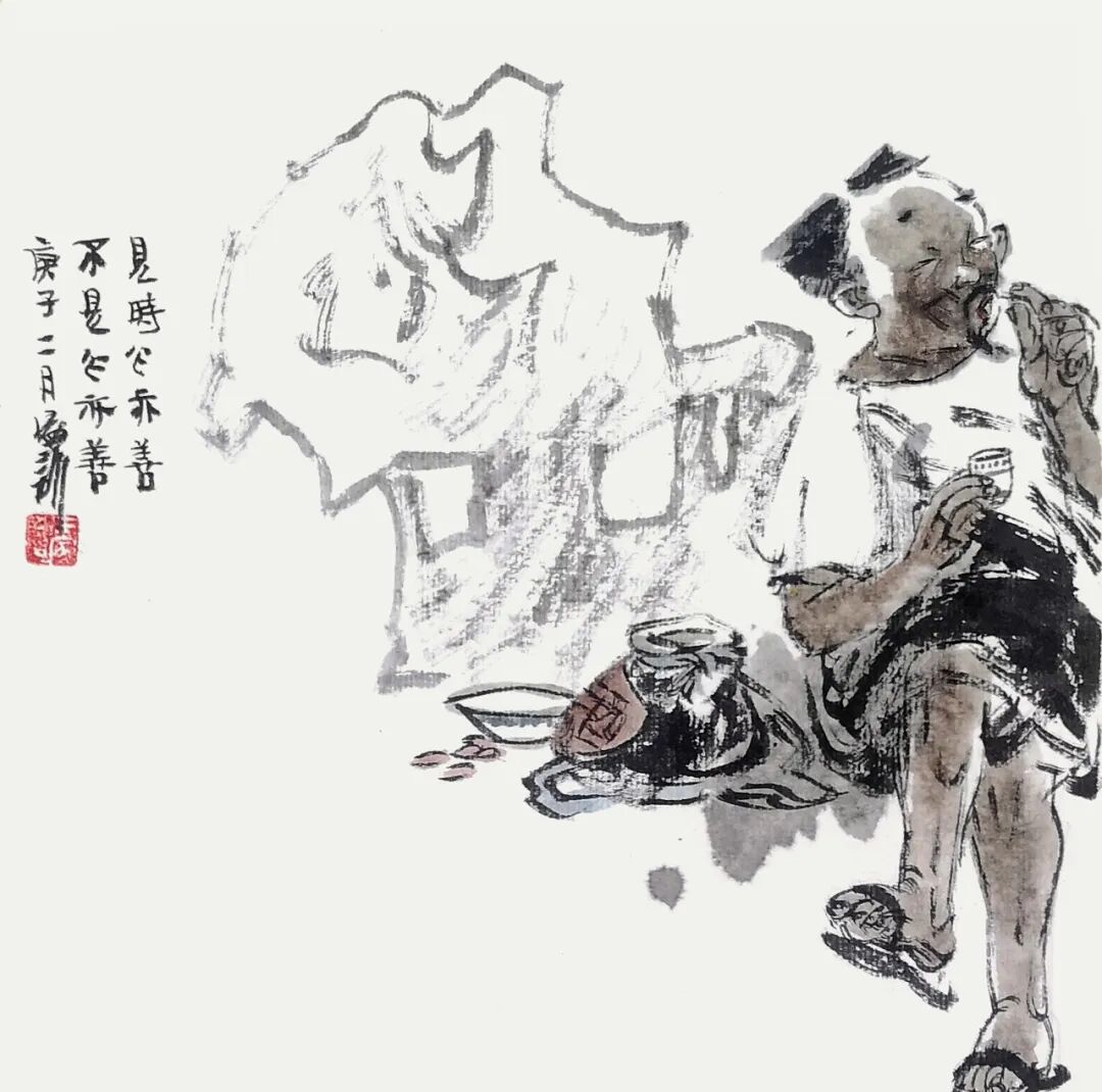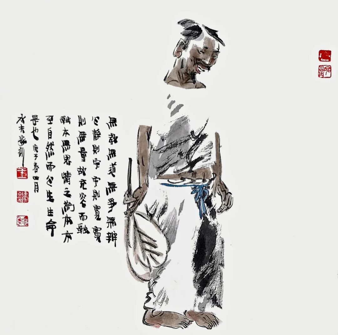 他用画笔赞美生命的质朴与平实;赞美自然的野趣与生机;赞美人的真诚、勤劳、淡泊与超逸。他的人物画,明朗健康、清新雅朴,于浓密中寓淡宕,于烂漫中见素朴,洋溢着一派动人气息,在现代繁忙的生活中,他写意人物画为观众提供了一个心灵的栖息之地。