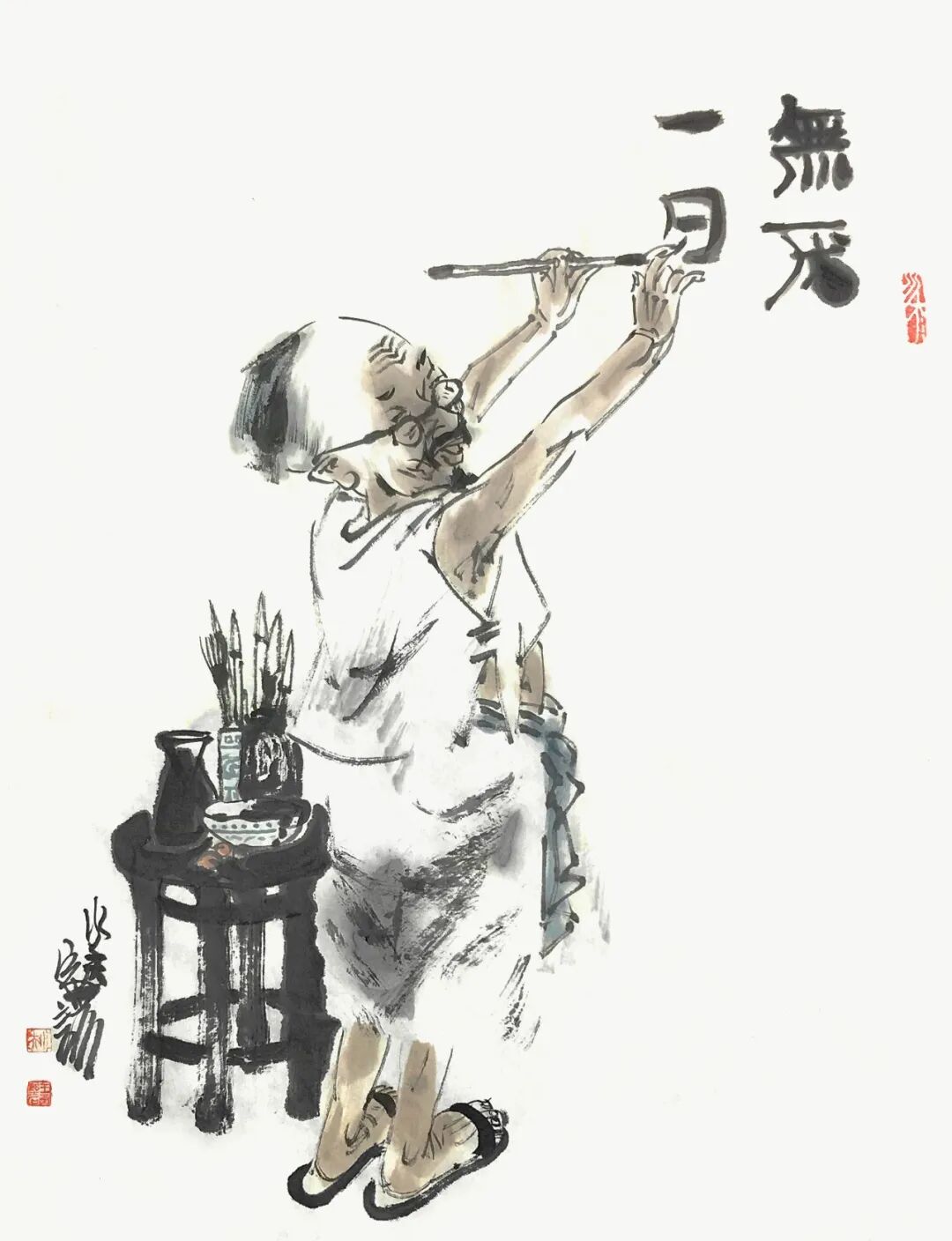 王家训对传统的关注与研究有很深的认识,他的作品呈现出中国水墨写意画中的文人气息以及传统水墨画中的那种完整性和内在张力。他注重从笔墨韵情中去寻找人物画的格调与个性,形式简朴而又神形兼备。