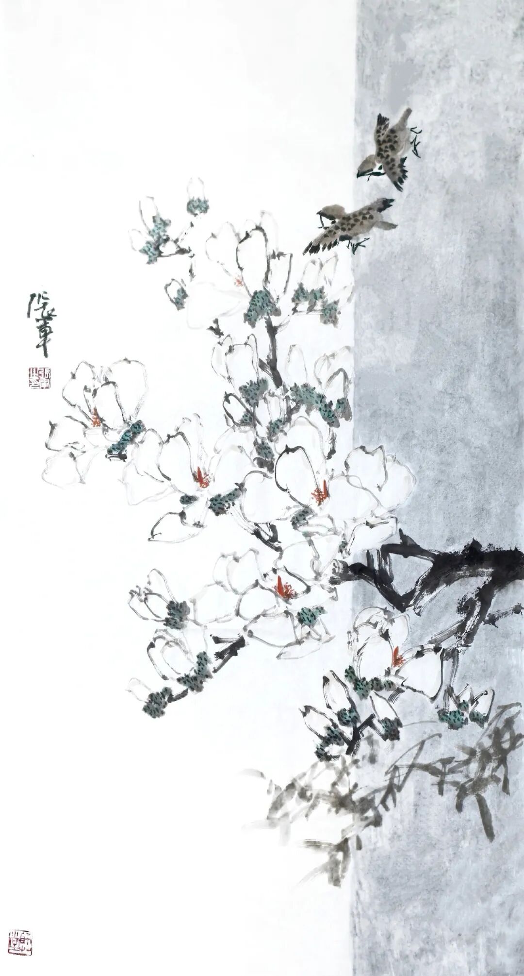 而后又陆续被诸多美术学者,美术评论家所认可;“他以自己的艺术才情推动了花鸟画的辉煌,在兼备小写意的内敛柔情与大写意的阳刚奔放之间开辟了又一条广阔的艺术空间”。“是现代不可多得的天才画家和佼佼者”。