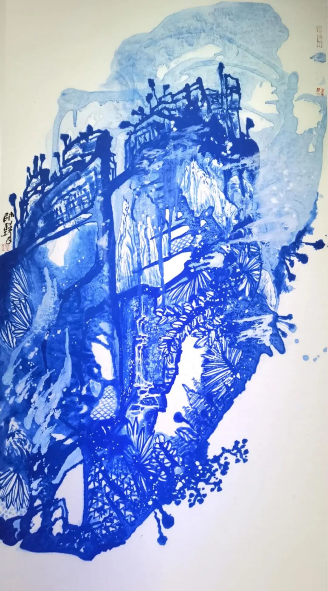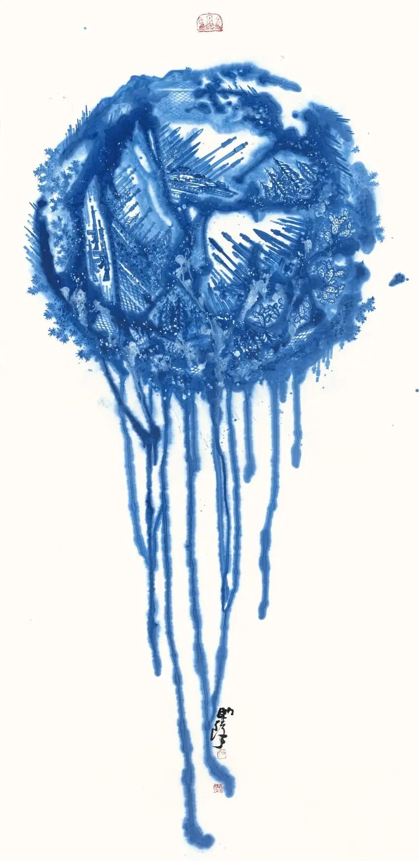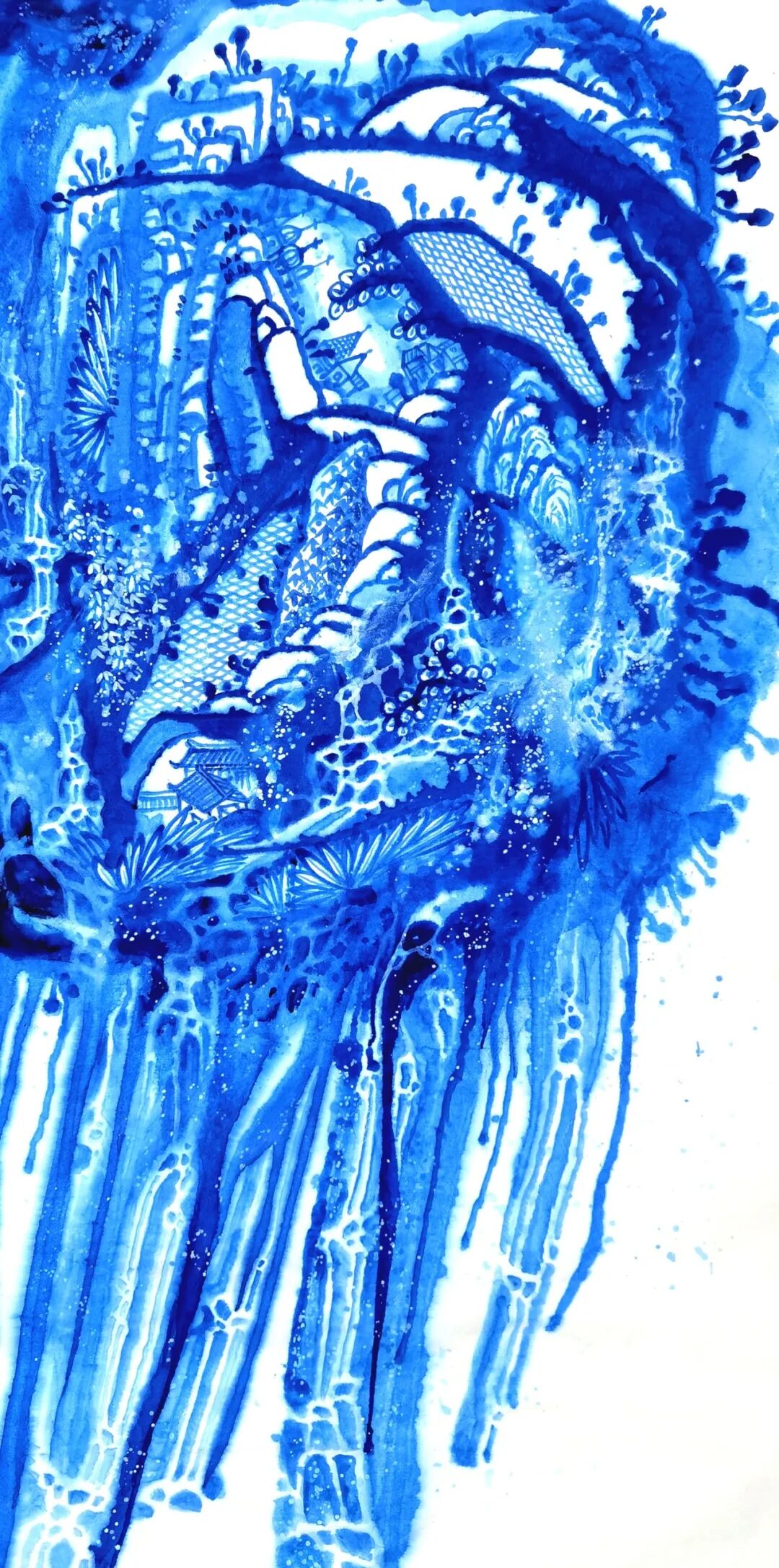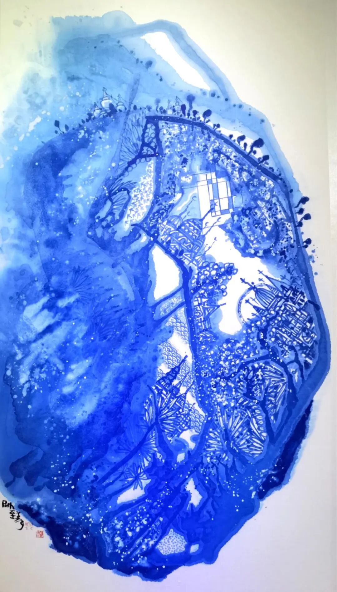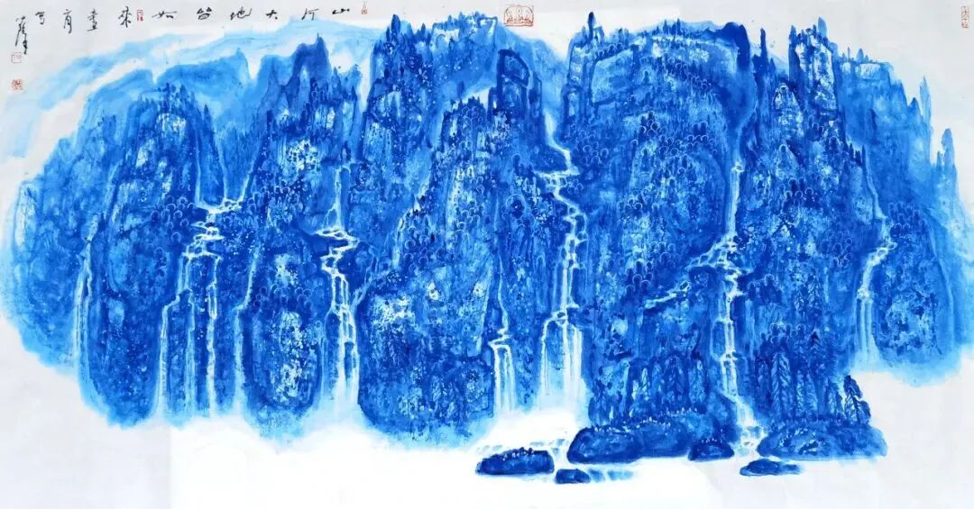 在艺术创作领域,何帅臻以东方水墨为语言,构建起“艺术+生态”的独特叙事体系,成为国际环保与和平主义绘画的代表人物。他坚守十七载初心,以地球生态为核心创作主题,用深邃的蓝色基调传递和平、低碳、环保的理念,作品《不让地球母亲泪再流》被联合国气候大会收藏,成为东方生态艺术走向世界的经典之作。他将中国传统哲学中的“天人合一”“物我一体”融入创作,以水墨笔触诠释人类命运共同体理念,作品先后走进塞尔维亚、英国、德国等十余个国家,用艺术搭建中外文化交流与生态共识的桥梁,让世界读懂中国的环保智慧与和平追求。