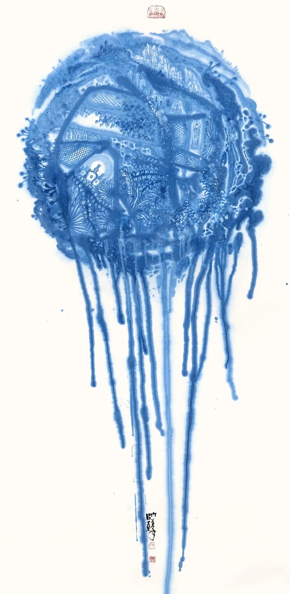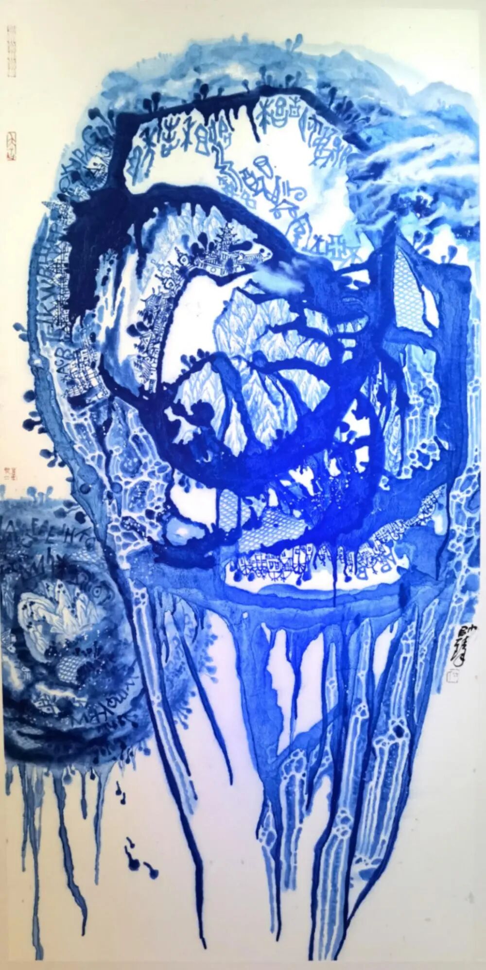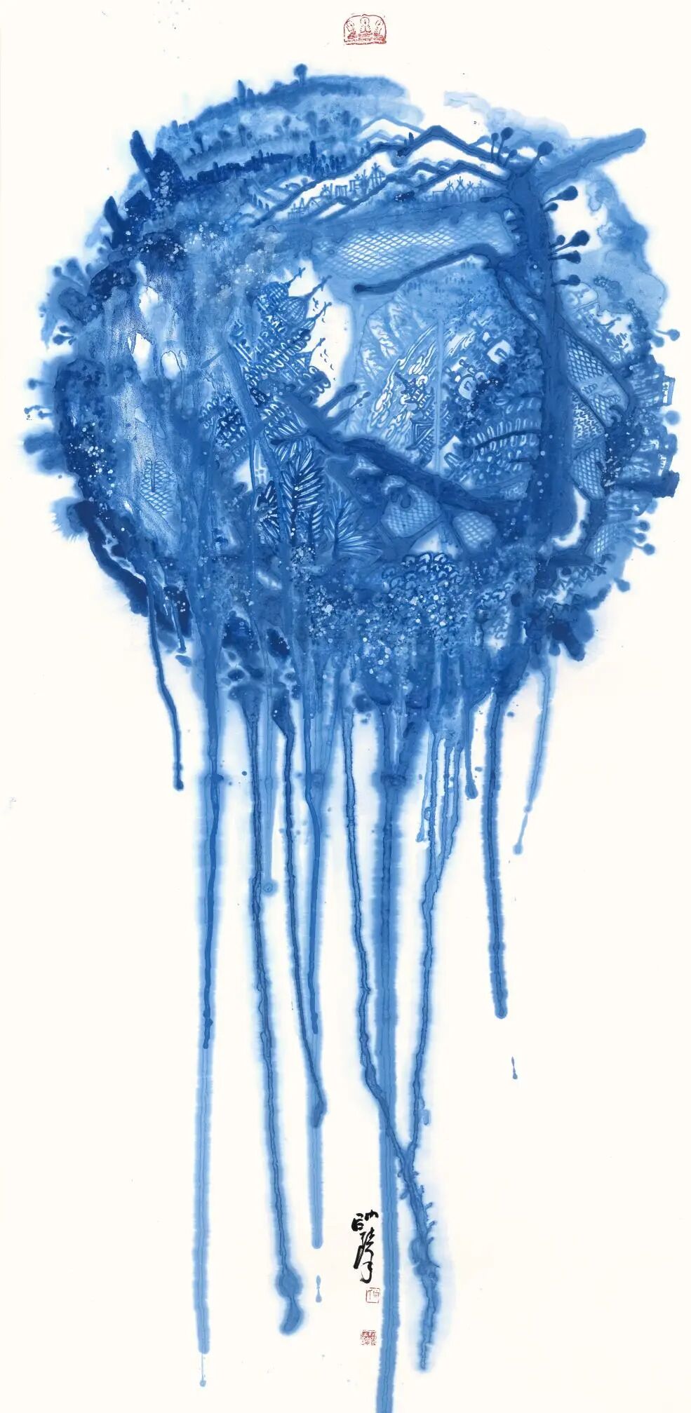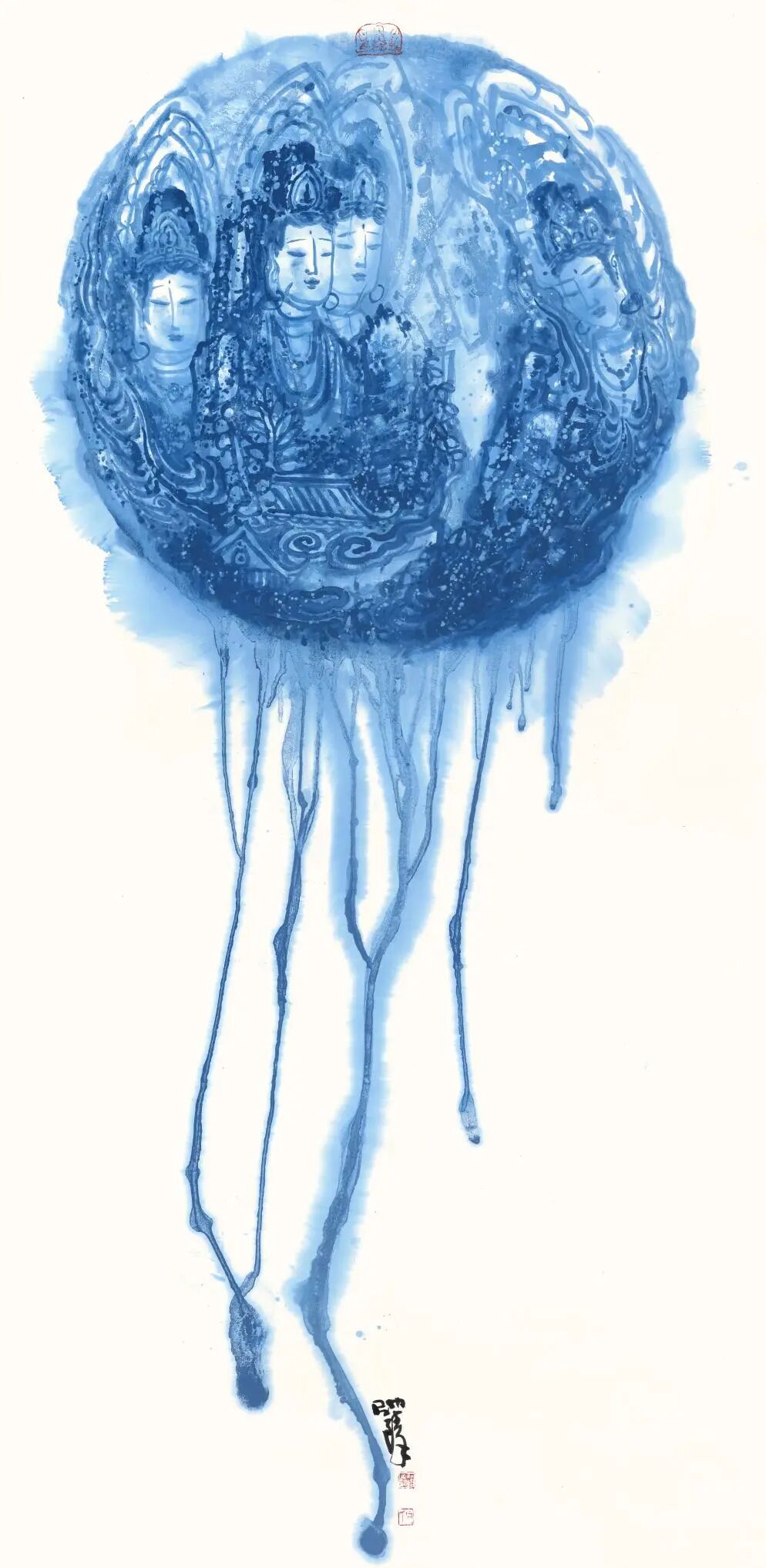 在艺术创作领域,何帅臻以东方水墨为语言,构建起“艺术+生态”的独特叙事体系,成为国际环保与和平主义绘画的代表人物。他坚守十七载初心,以地球生态为核心创作主题,用深邃的蓝色基调传递和平、低碳、环保的理念,作品《不让地球母亲泪再流》被联合国气候大会收藏,成为东方生态艺术走向世界的经典之作。他将中国传统哲学中的“天人合一”“物我一体”融入创作,以水墨笔触诠释人类命运共同体理念,作品先后走进塞尔维亚、英国、德国等十余个国家,用艺术搭建中外文化交流与生态共识的桥梁,让世界读懂中国的环保智慧与和平追求。