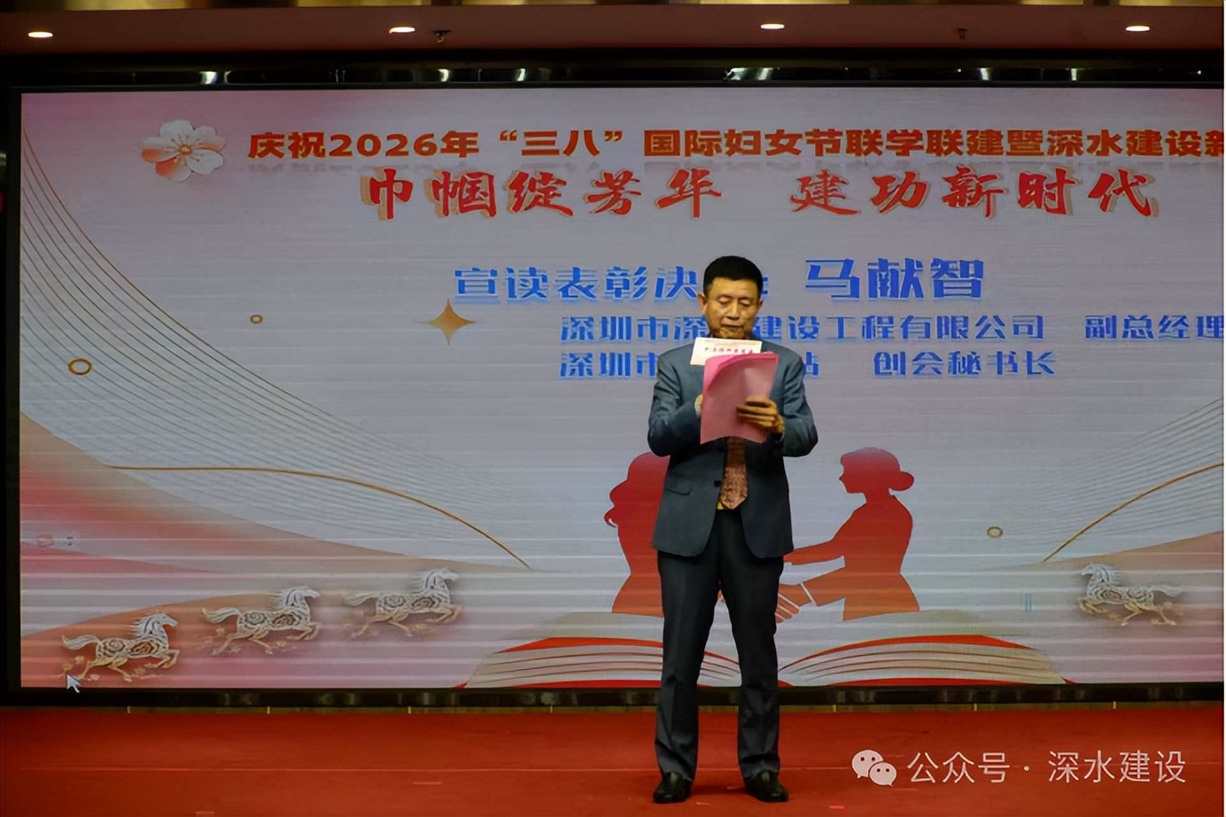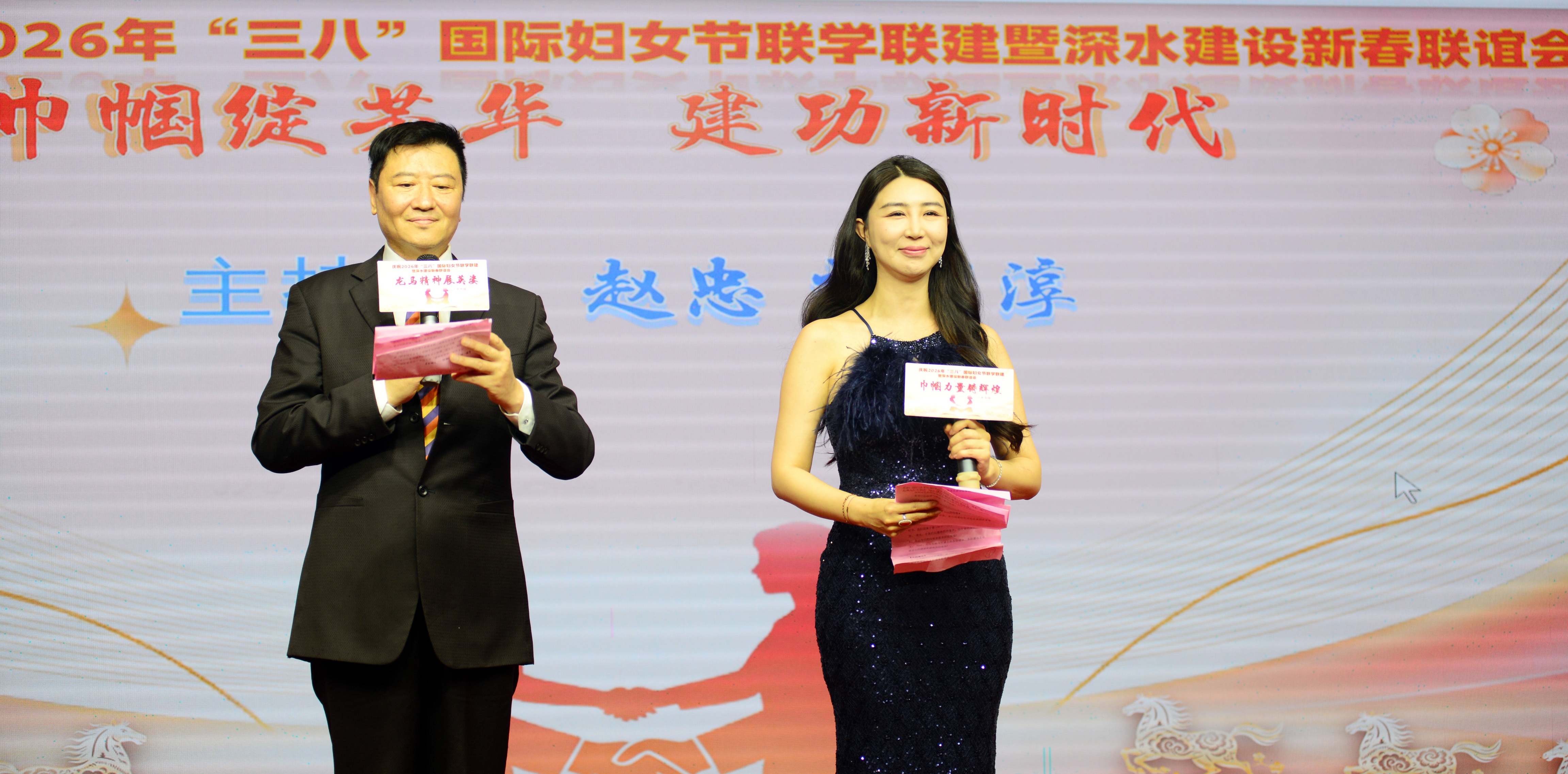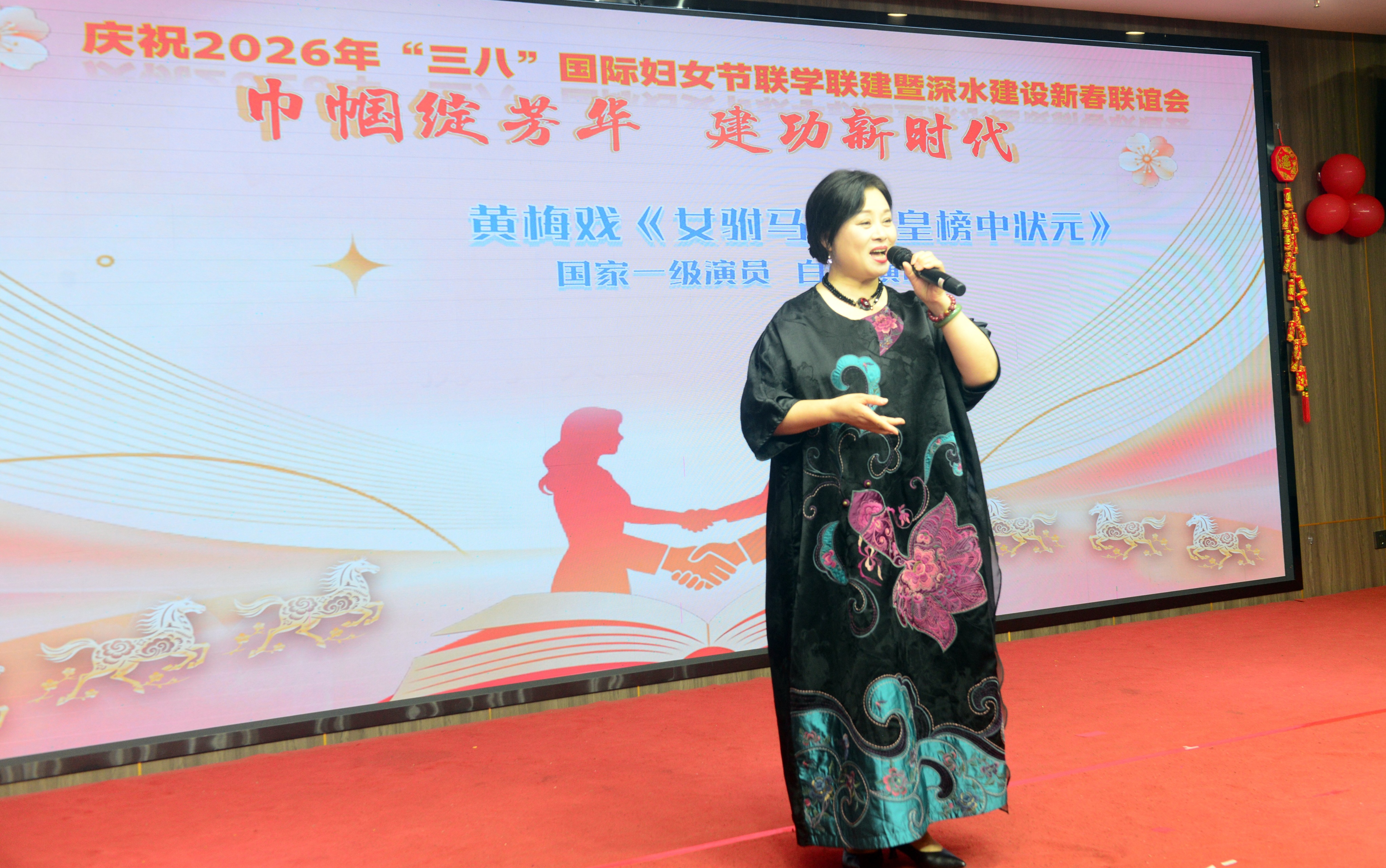 三月春风暖,巾帼绽芳华。记者:卢玉莲,3月7日,“巾帼绽芳华 奋进新征程”2026年“三八”国际妇女节联学联建暨深水建设新春联谊会成功举办。本次活动由深圳市文创体育类社会组织联合党委指导,深圳市深水建设工程有限公司、深圳红色驿站主办,深圳市红色驿站党支部、深圳市观赏石文化艺术协会党支部、深圳市民俗摄影学会党支部、深圳市公共文化促进会党支部、深圳市舞台美术行业协会党支部、深圳市旗袍文化艺术行业协会党支部、深圳市候鸟老年门球协会党支部、深圳市手工文化产业协会党支部、深圳市演出行业协会党支部、深圳市佾礼佾舞文化研究院党支部、深圳市客家山歌协会党支部、深圳市春秋新艺戏剧艺术团联合党支部等十二家党支部携手联建,由深圳市文华音乐中心、升职传媒(深圳)有限公司、深圳浙江台州战友会、广州紫盛食品供应链管理有限公司、新疆·塔县帕米尔摄影家协会等单位协办。