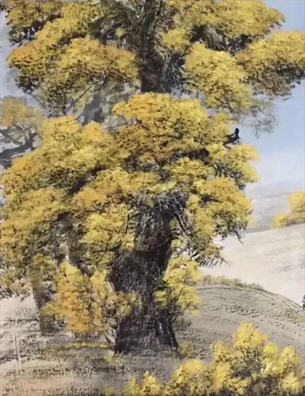 在树木,山水瀑布等作品中,贺天飞突破了传统国画“随类赋彩”的限制,以大胆的色彩组合传递情绪。通过色彩的“情绪性”,将“自然之美”升华为“心灵之境”,又通过颜色强烈对比制造视觉冲击。这种“冲突中的和谐”,正是当代艺术“观念表达”的典型特征。