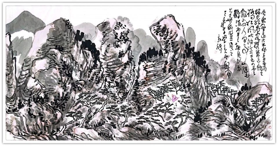 乙巳春和,高鸿先生以丈二巨幅,挥写《云里藏寺》《春日雅集》《山中问答》三卷。此三作既入故宫百年大展之选,为水墨原创之精品;亦为先生山水文化之鸿篇,熔铸笔墨心魂与文脉担当。今观其笔墨,藏禅意于丘壑,寄清欢于林泉,发哲思于问答,实为当代文人画之正脉回响。