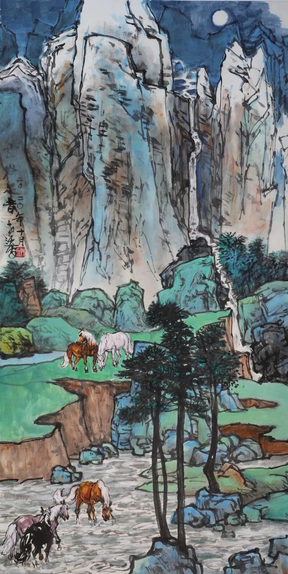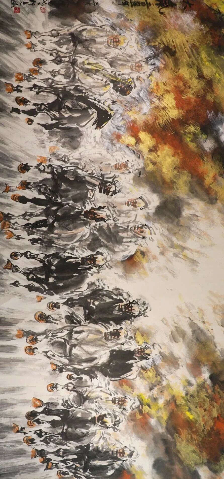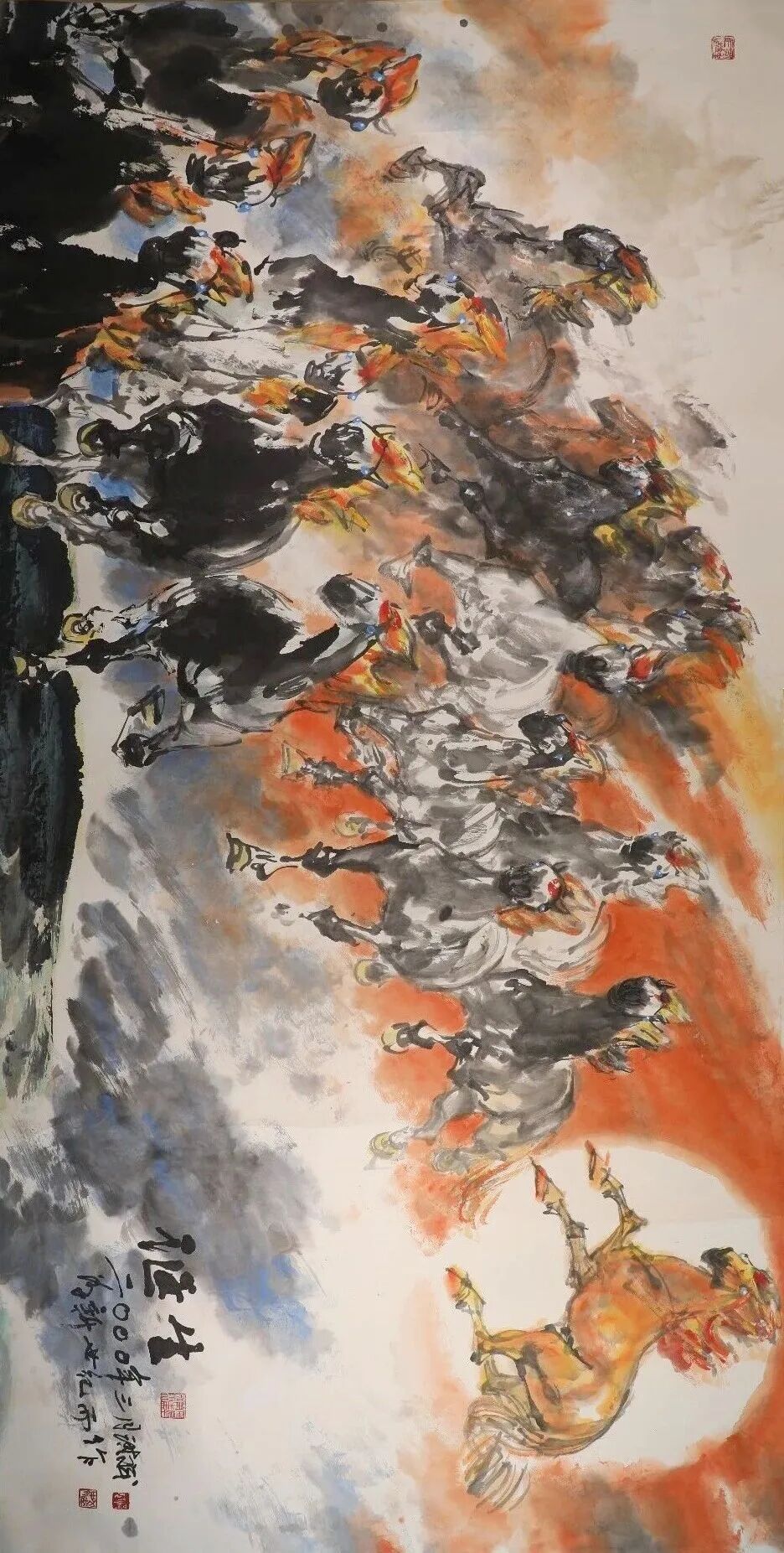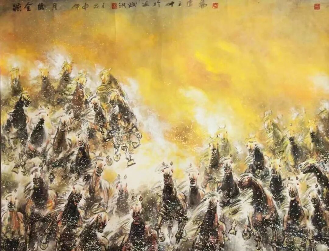在时代的洪流面前,一位艺术家的个体力量或许微不足道,但艺术的力量,却能挖掘出时代文明的最大潜能,感召社会大众拼搏进取。历经数十年的笔墨锤炼与艺术精神修炼,他的绘画见微知著、标新立异,塑造出属于我们这个时代的艺术新形象,填补了历史画卷中“马”的形象表达空白。