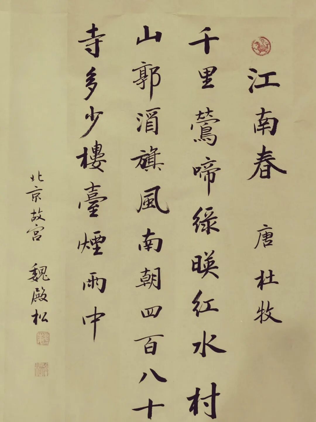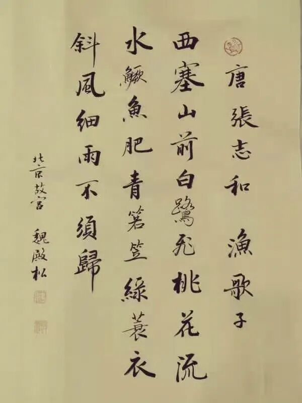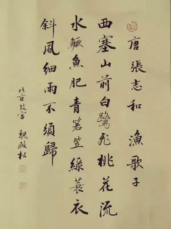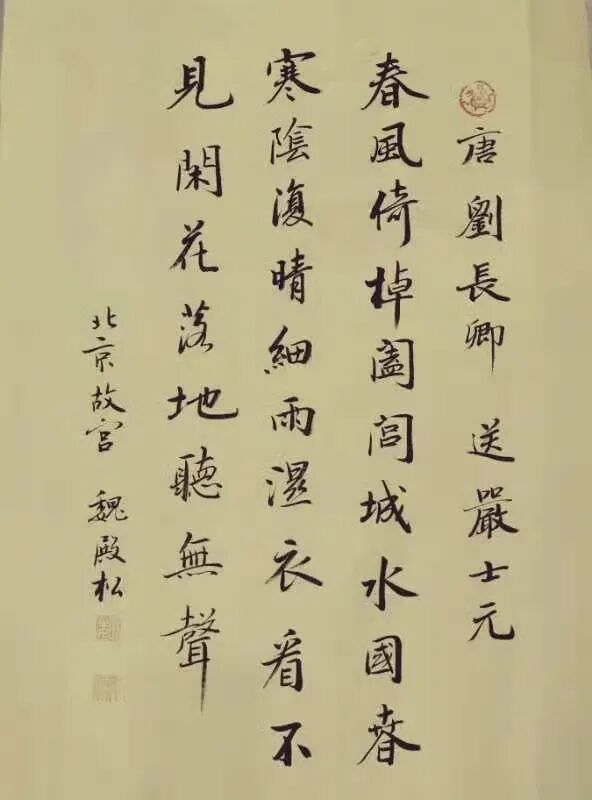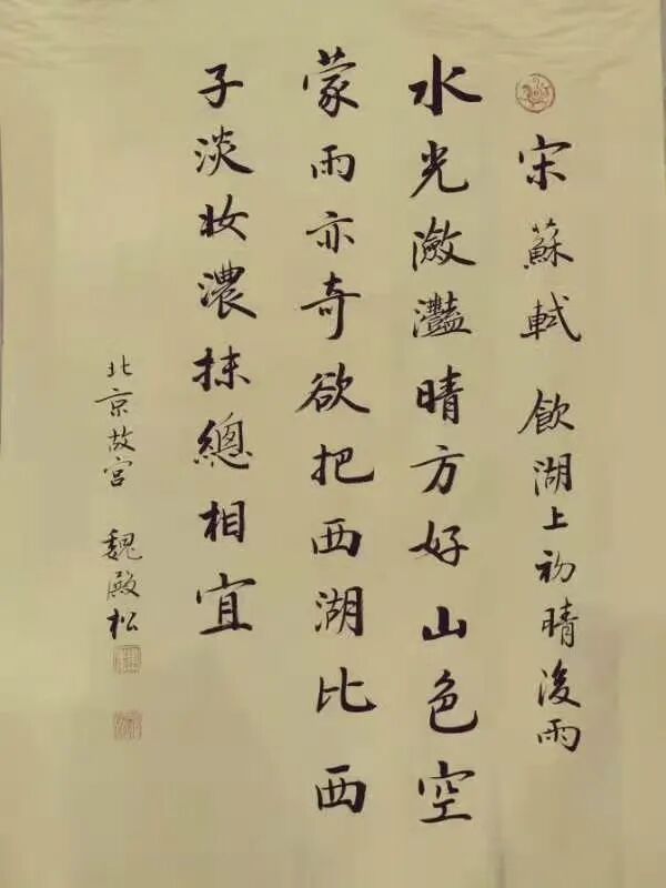 魏殿松是从故宫博物院走出的书法家,多年在故宫学习研究并倡导宣传皇宫“馆阁体”书法,作品具有“魏晋风、殿堂韵、松柏骨”的美誉而受到广泛好评。近年来,“紫宸清韵一一魏殿松书法系列展”,曾在首都博物馆、恭王府博物馆、保利艺术馆、扬州个园、南阳市图书馆、深圳证交所博物馆等三十多处举行个人书法展。其作品端庄厚重,中正平和的“皇宫”气象,深受好评,曾为全国各地的文化场所以及公园、学校、企业、寺院等处题词。作品被故宫博物院、人民大会堂、恭王府以及中国香港、中国澳门、新加坡、日本、韩国等国家和地区的艺术馆收藏。作品在中国嘉德、北京保利、北京翰海、北京荣宝斋等拍出较好成绩,受到社会各界书画爱好者及收藏者的关注。