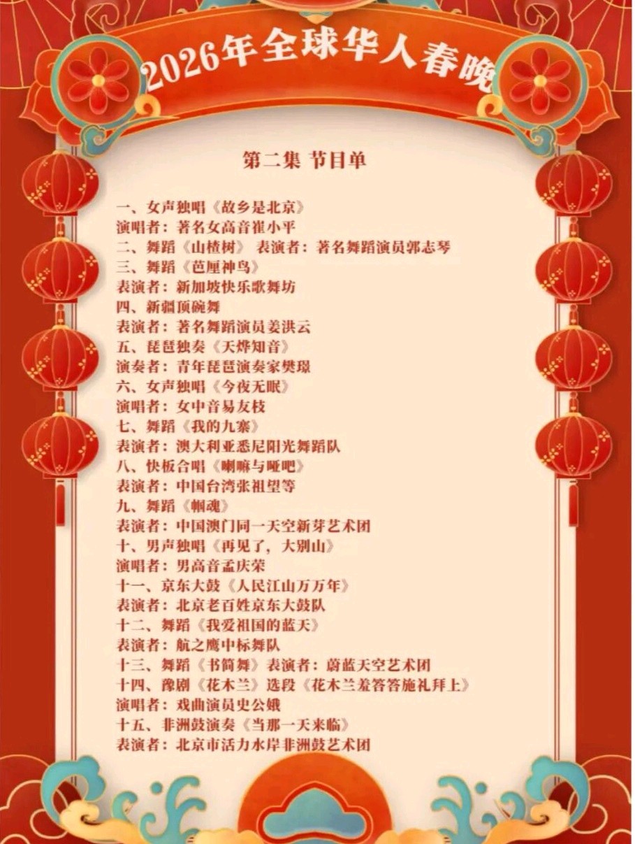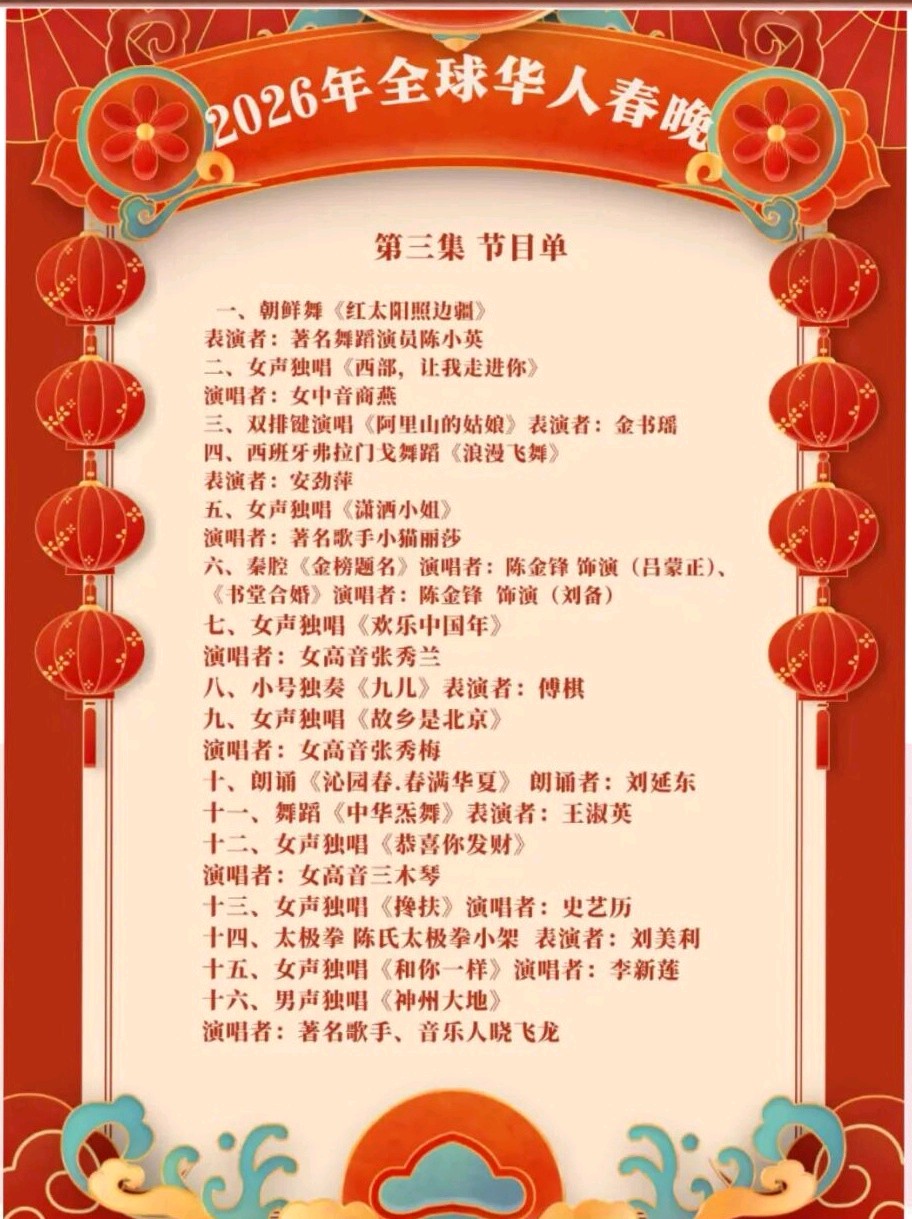 中国煤矿文工团国家级歌唱家张帆女士,演唱的《颂歌献给共产党》,在农历腊月二十三(小年)《2026年全球华人春晚》第一集播出。