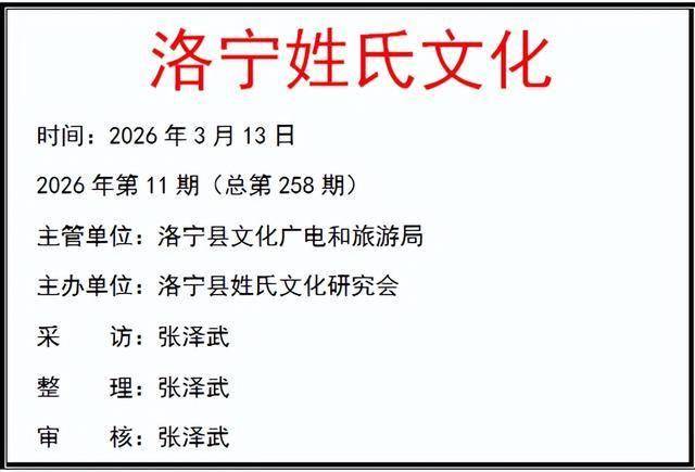 作者简介:张泽武,洛宁县陈吴乡新寨村人,2003年,发起并成功组织成立了洛宁县姓氏文化研究会,担任常务副会长兼秘书长一职,2006年参与组织筹备成立洛阳市姓氏文化研究会,任副秘书长。2017年被推举为洛宁县姓氏文化研究会会长。2024年8月再次当选为洛宁县姓氏文化研究会会长。